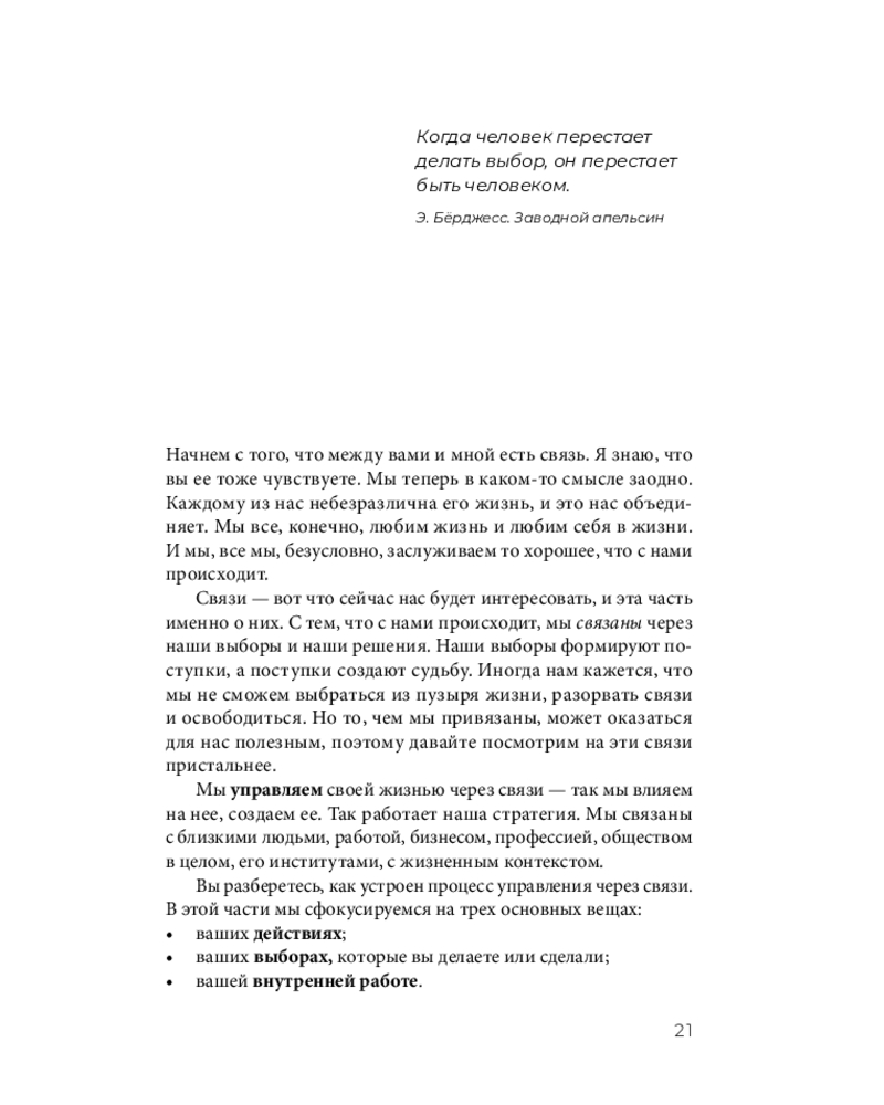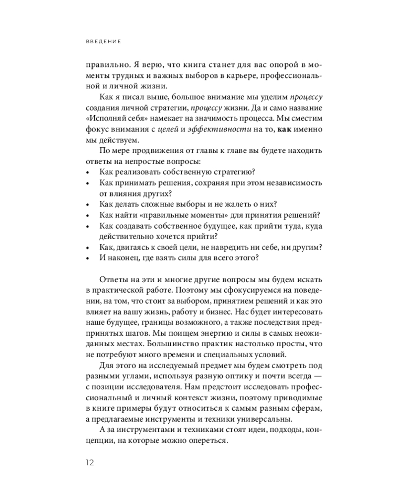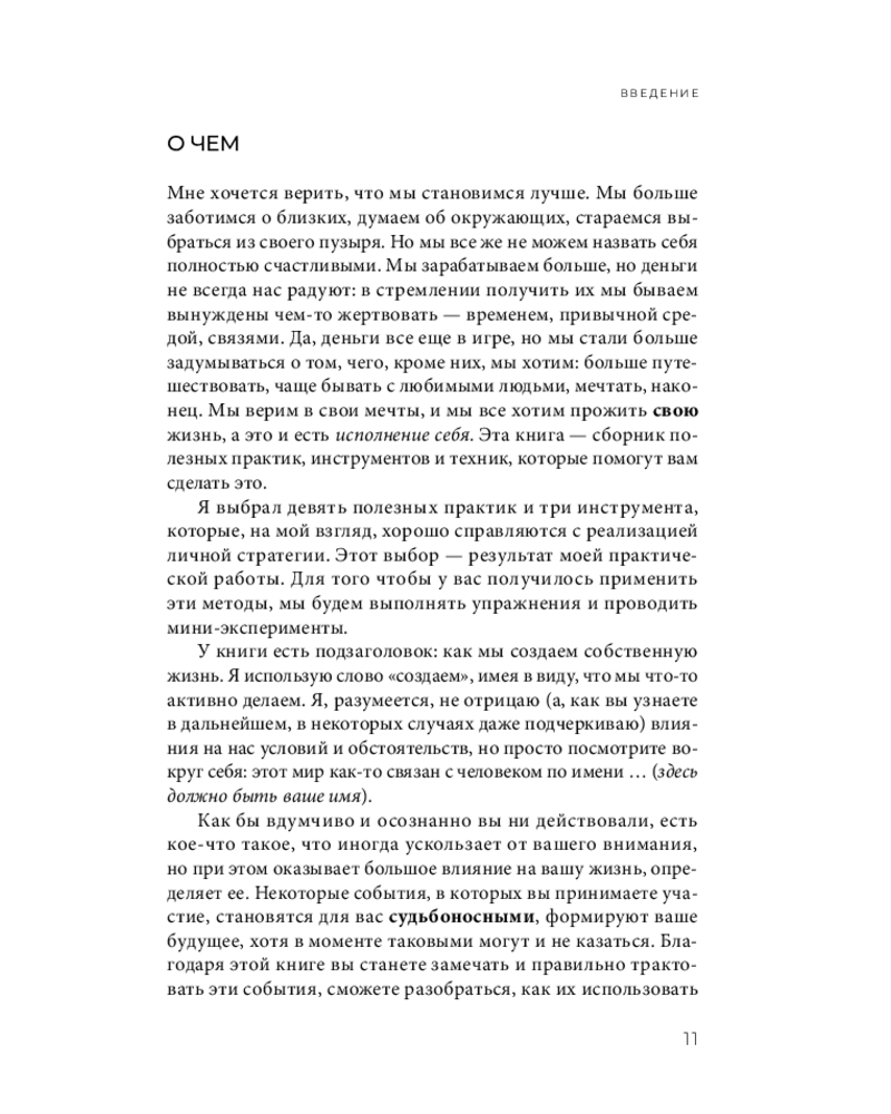 Это книга для людей, которые слишком взрослые, чтобы верить в «секрет вселенной», но слишком живые, чтобы смириться с автопилотом. «Исполняй себя» — это навигатор по личной стратегии: как вы на самом деле создаёте свою жизнь, какие решения вас сюда привели и в какое будущее вы уже инвестируете своими сегодняшними выборами. Не про «мечтай и визуализируй», а про связи, последствия и ответственность, которую можно выдержать.