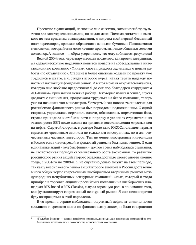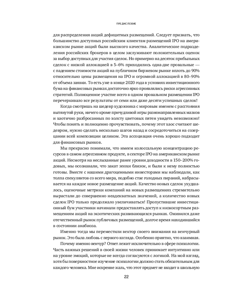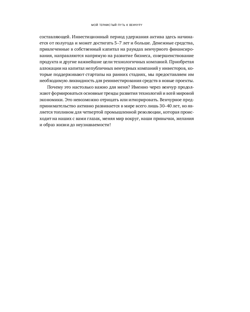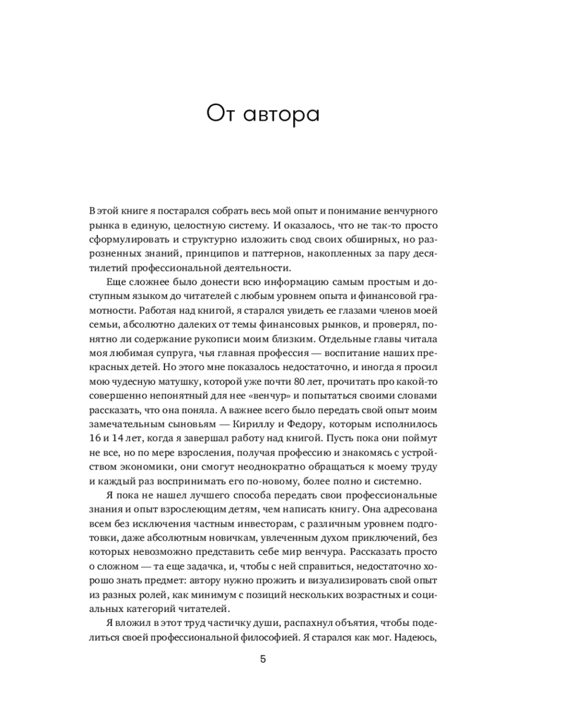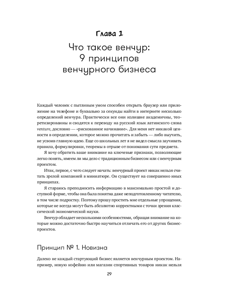 Человеческая психика устроена таким образом, что все неизвестное нас одновременно пугает и притягивает, разжигая огонь нашего природного любопытства. Для большинства частных инвесторов венчур по-прежнему выглядит закрытым элитарным клубом, где «там наверху» киты сколачивают огромные состояния, а «здесь внизу» — удел историй про слитый капитал и заманчивые презентации. «Путеводитель по венчуру» протягивает руку каждому, кто собирается в очень интересное, но опасное путешествие по миру венчура.