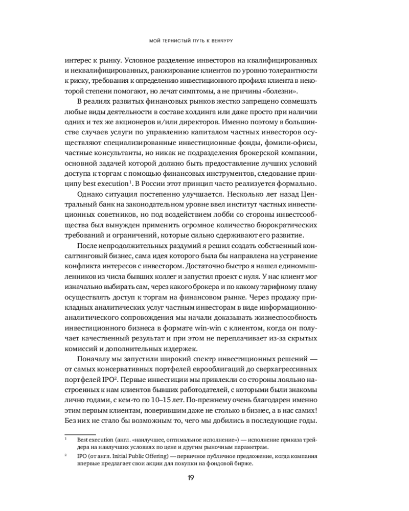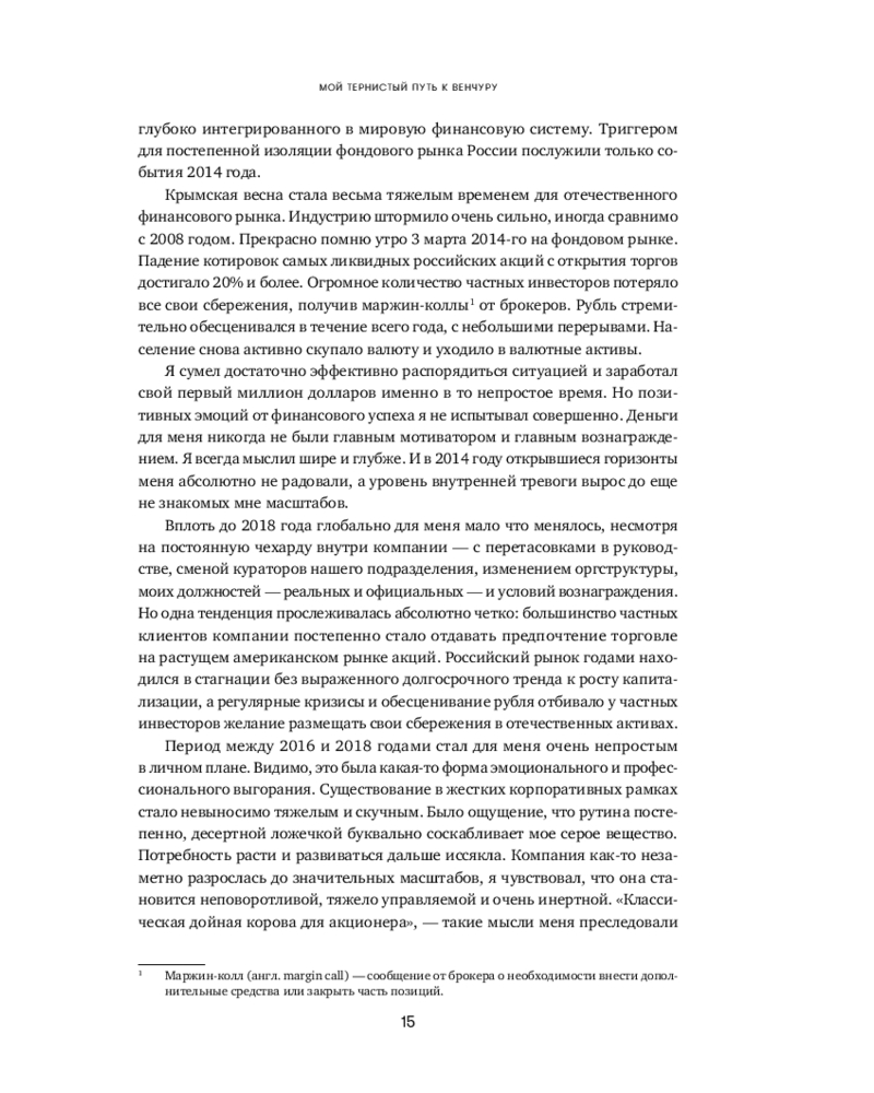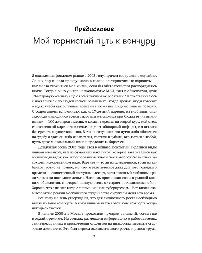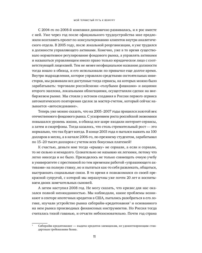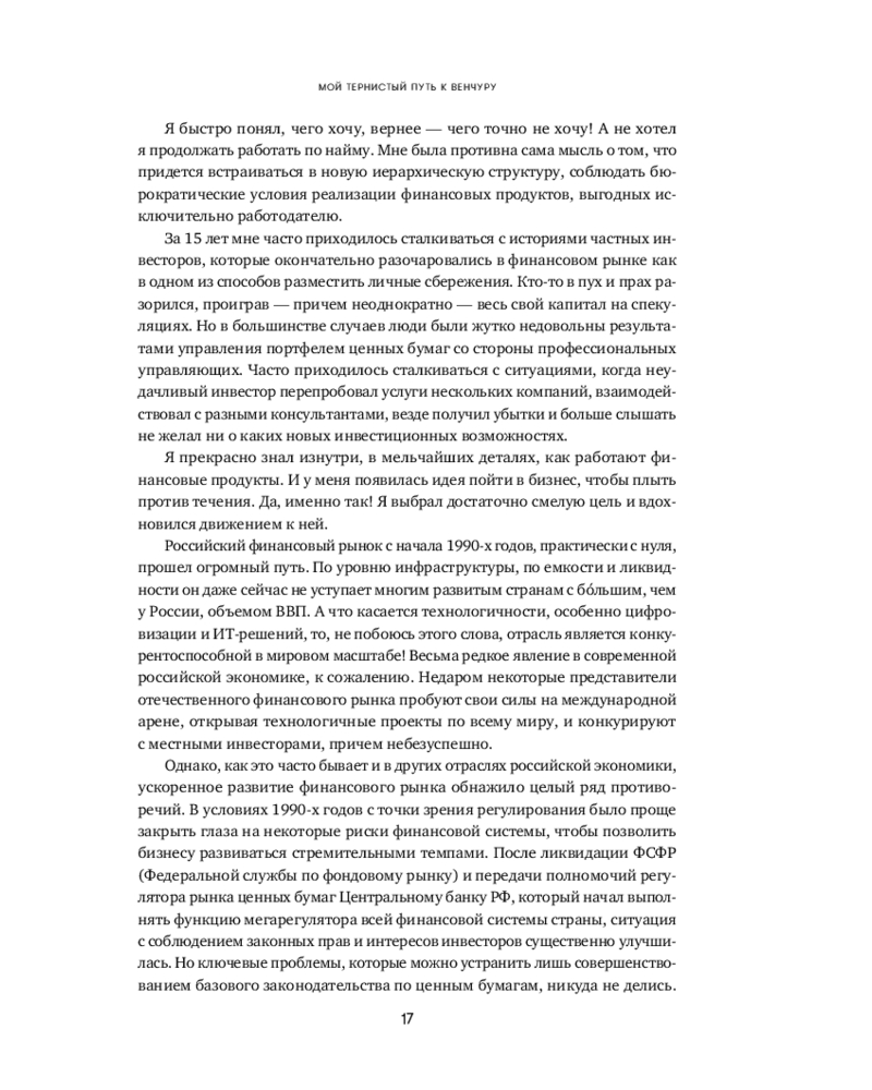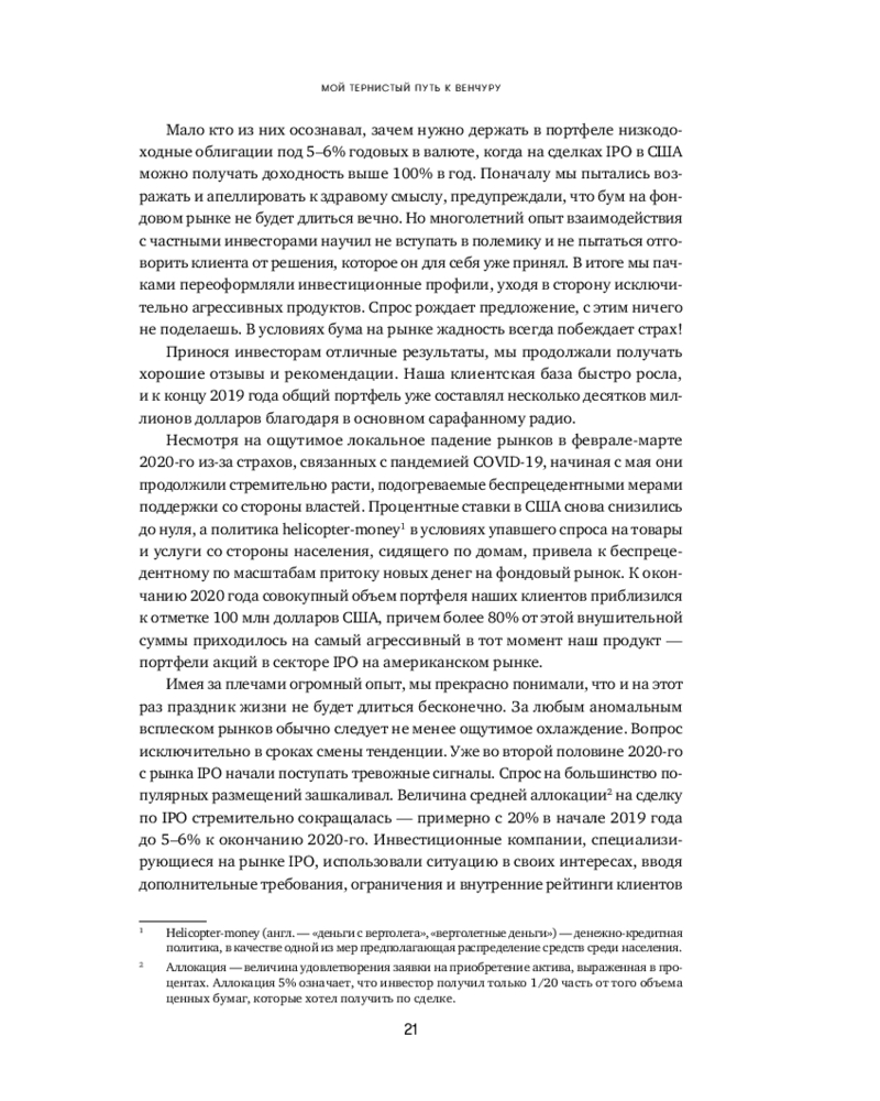 Человеческая психика устроена таким образом, что все неизвестное нас одновременно пугает и притягивает, разжигая огонь нашего природного любопытства. Для большинства частных инвесторов венчур по-прежнему выглядит закрытым элитарным клубом, где «там наверху» киты сколачивают огромные состояния, а «здесь внизу» — удел историй про слитый капитал и заманчивые презентации. «Путеводитель по венчуру» протягивает руку каждому, кто собирается в очень интересное, но опасное путешествие по миру венчура.