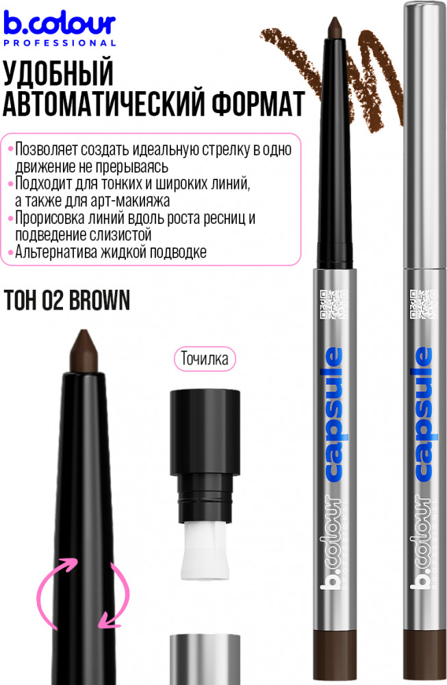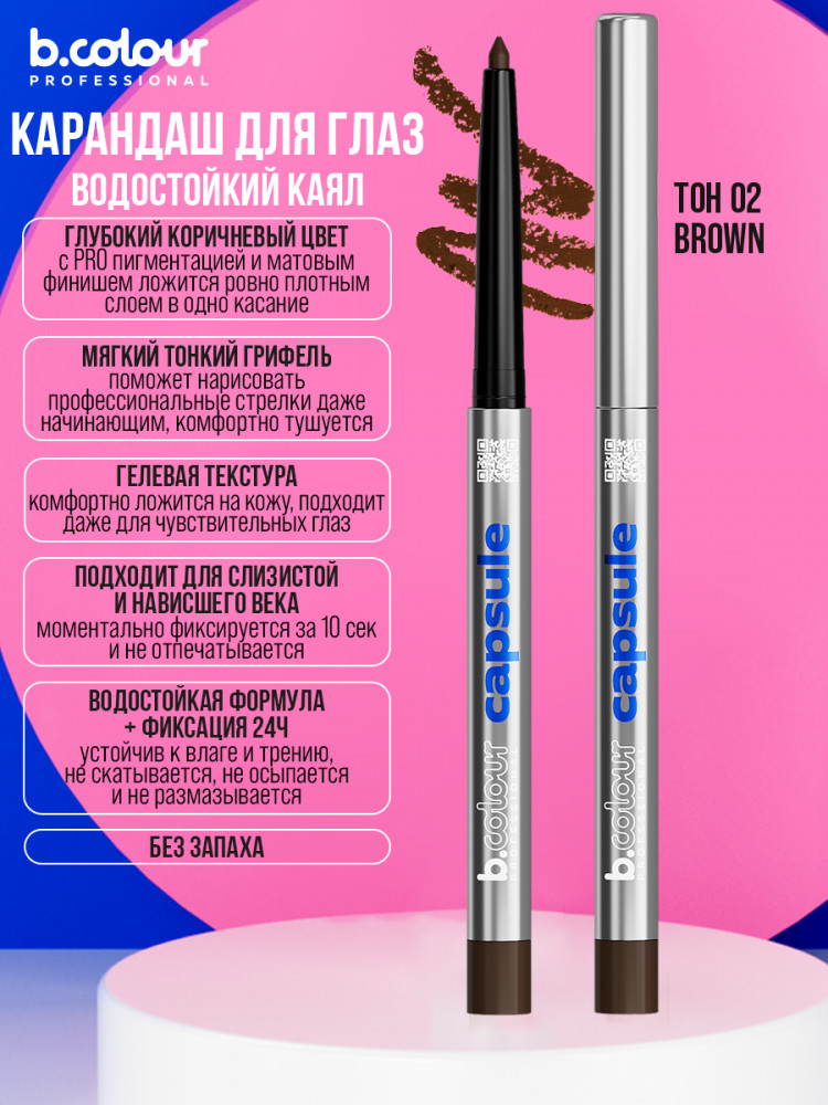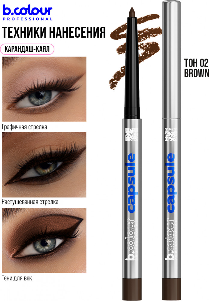 B.colour Professional Карандаш для глаз гелевый автоматический, оттенок 02 Brown