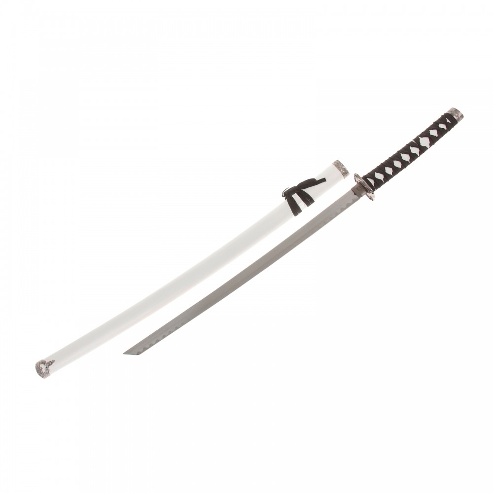 Катана сувенирная на подставке, белые ножны, черная обмотка-25% +508