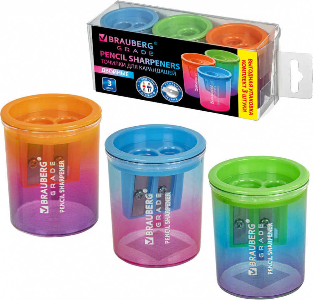 💳 Оплатить за товар можно при получении 🇰🇿 Есть бесплатная доставка по Казахстану от 1 дня 🎁 Копите бонусы с каждой покупки Точилка BRAUBERG «Grade» — предмет № 1 в паре с карандашом на рабочем столе в офисе, на школьной парте или дома. Набора из 3 шт. хватит на каждого ребенка в семье или на небольшую рабочую группу в офисе. |