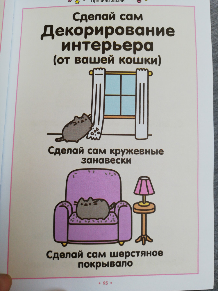 Книга очень оригинальная. На странице картинка и буквально несколько слов о кошке. Дочь в восторге. Переодически возвращается к ней. Мне она напомнила Жана Эффеля Сотворение мира в картинках, только детский вариант про кошку.