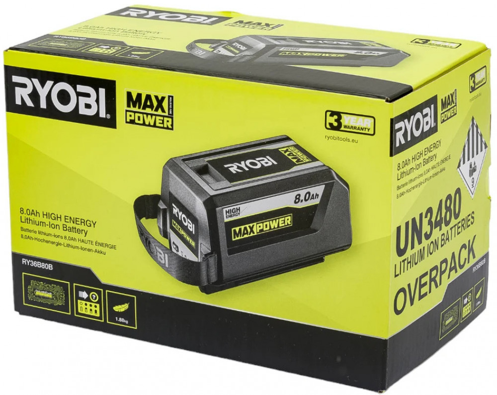Ryobi Аккумулятор RY36B80BВ данный момент этот товар отсутствует в продаже. Возможно, у нас найдется аналогичный или похожий товар здесь. Аккумулятор RY36B80B 36В, 8 А/ч Ryobi 5133005911. Обеспечивает впечатляющую мощность и продолжительность работы, превосходящие возможности обычных аккумуляторов. Идеален для тяжелых работ, таких как длительное кошение или пиление толстых бревен. Технология контроля состояния каждой ячейки Intellcell позволяет увеличить как время работы на одной зарядке, так и срок службы аккумулятора и его безопасность. 4 светодиодных индикатора аккумулятора информируют об уровне его заряда. Нейлоновая лямка упрощает установку и снятие аккумулятора. |