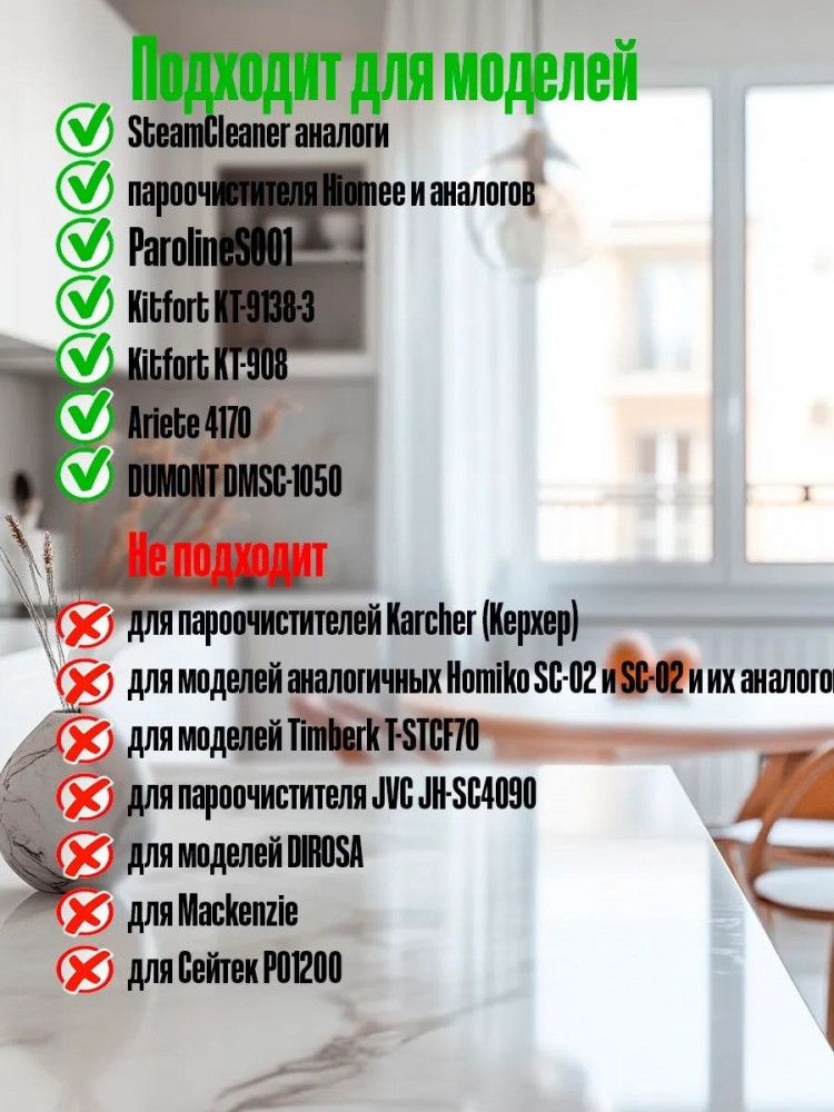 Набор сменных насадок для пароочистителяВ данный момент этот товар отсутствует в продаже. Возможно, у нас найдется аналогичный или похожий товар здесь. Набор сменных насадок для пароочистителя расширит возможности вашего устройства и позволит вам эффективно очищать различные поверхности. В комплект входят насадки для чистки пола, окон, плиты, ванной комнаты, а также щелевая насадка для труднодоступных мест. Все насадки изготовлены из высококачественных материалов, устойчивых к высоким температурам и воздействию влаги. С помощью этого набора вы сможете быстро и легко удалить грязь, жир, накипь и другие загрязнения, не прибегая к агрессивным химическим средствам. |