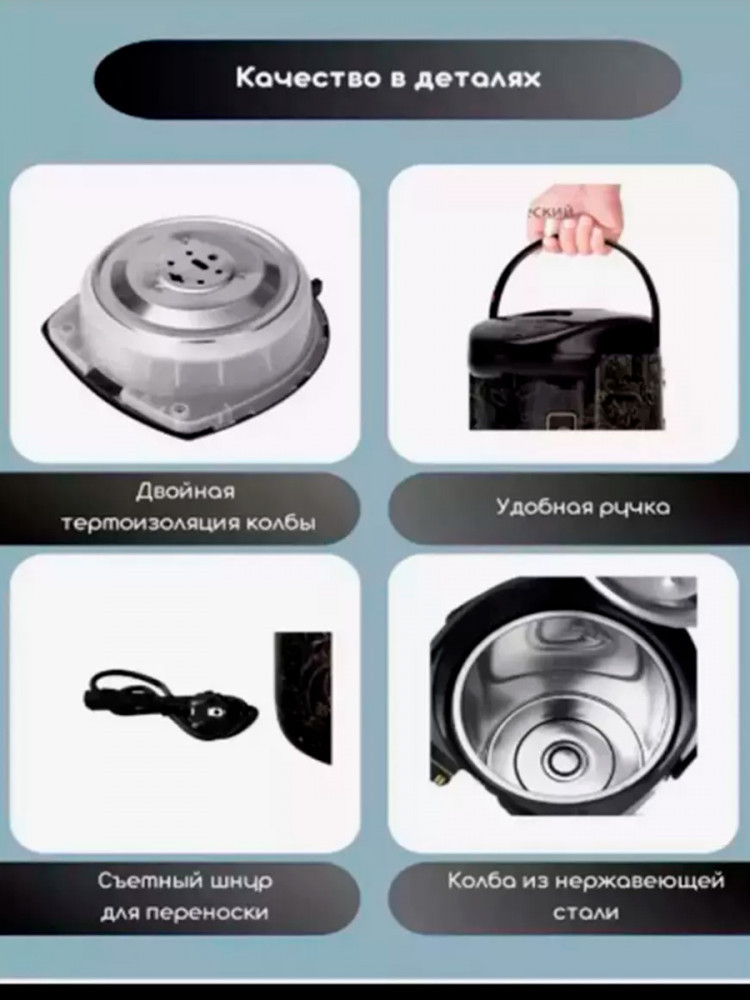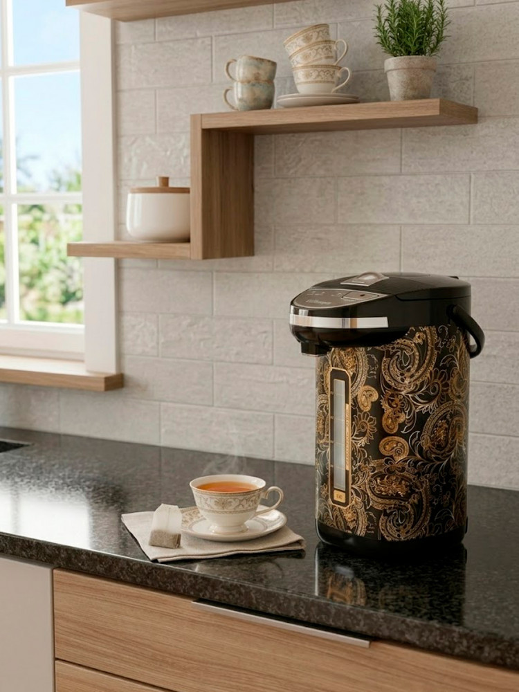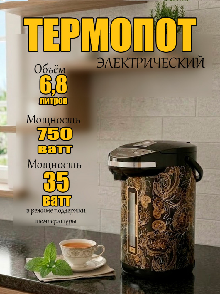 Термопот — это многофункциональный электрический прибор, который объединяет функции кулера, чайника и термоса. Он доводит воду до кипения и сохраняет ее горячей. Прибор одинаково удобен для домашнего применения и для использования в небольших офисах, где чай или кофе пьют часто, а тратить время на кипячение некогда. Также термопот идеально подходит для семей с маленькими детьми: можно быстро приготовить молочную смесь или кашу.