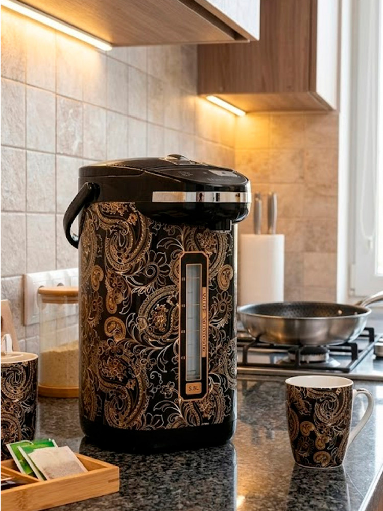Термопот с легкостью кипятит воду, как чайник, и сохраняет ее горячей долгое время, как термос. Он выполнен из инновационных материалов с высокими термоизоляционными свойствами. Данная модель абсолютно безопасна. В процессе использования его стенки не нагреваются, а специальная защелка, фиксирующая крышку в закрытом положении, предотвращает случайное расплескивание кипятка при переноске термопота.