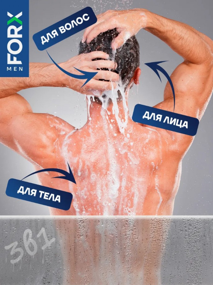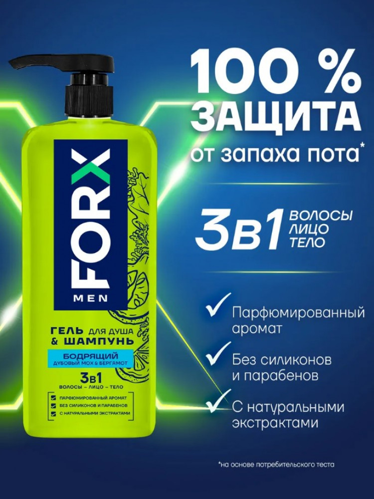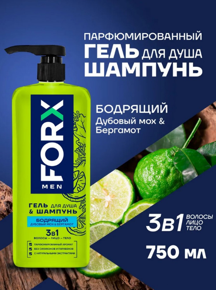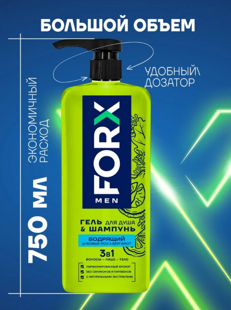 FORX Гель для душа и шампунь 3 в 1 Men «Бодрящий»