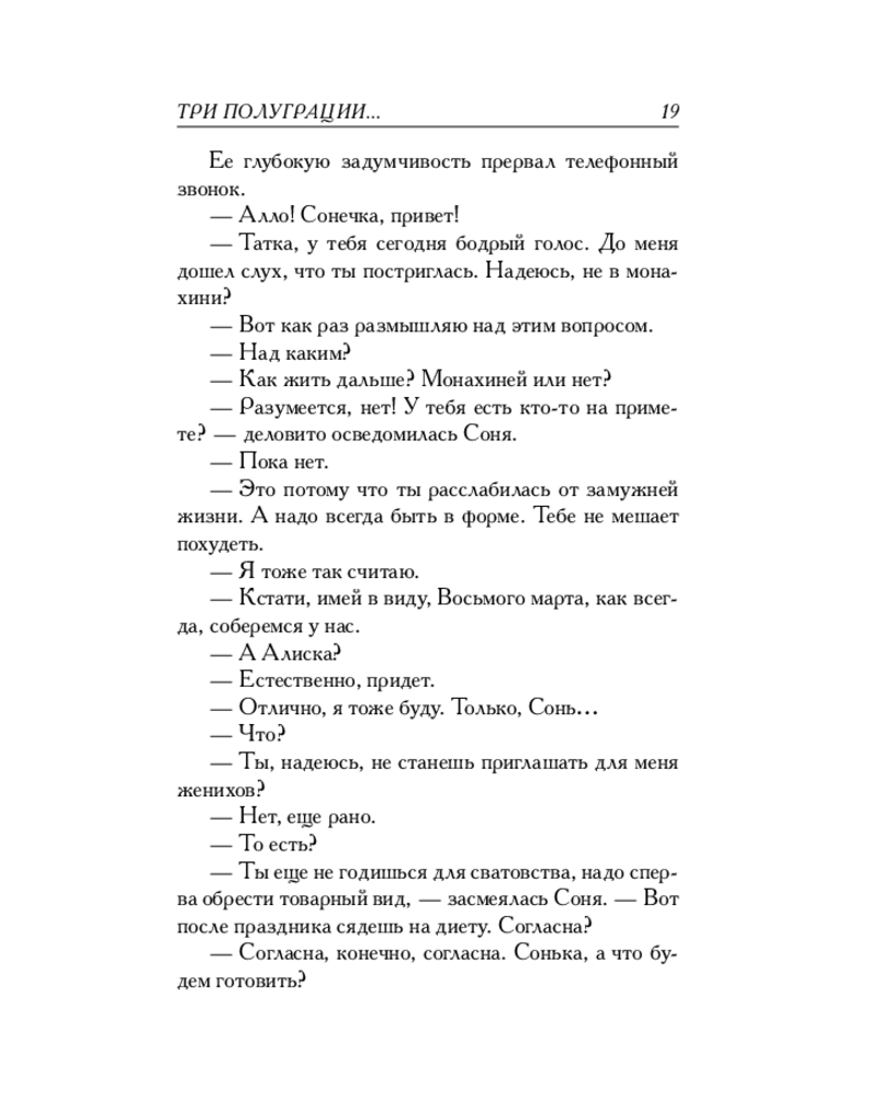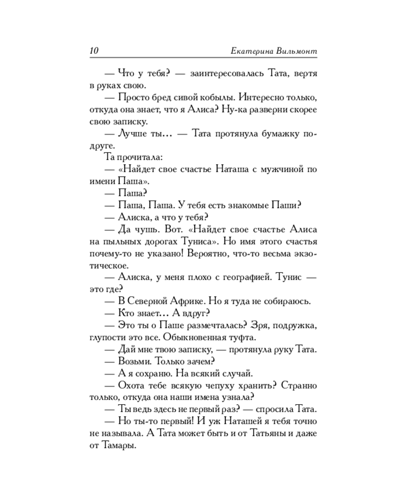 💳 Оплатить за товар можно при получении 🇰🇿 Есть бесплатная доставка по Казахстану от 1 дня 🎁 Копите бонусы с каждой покупки Серия: Гормон счастья. Романы Екатерины Вильмонт Героини романа — три подруги, и у всех трех, как назло, кризис в личной жизни. Поддерживая друг друга и стараясь не унывать, попадая порой в забавные, порой в загадочные ситуации, они стараются преодолеть черную полосу и не без вмешательства «необъяснимых» сил находят каждая свое счастье. |