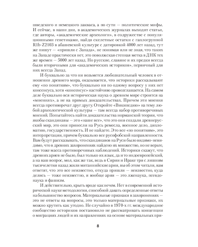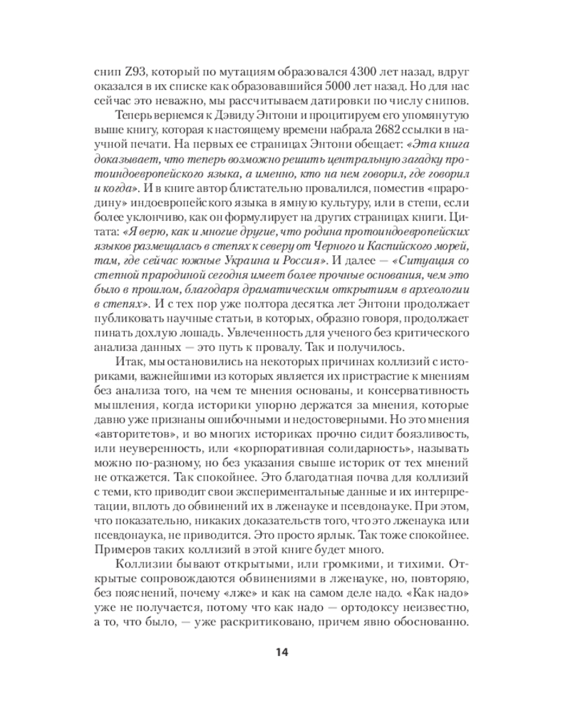 💳 Оплатить за товар можно при получении 🇰🇿 Есть бесплатная доставка по Казахстану от 1 дня 🎁 Копите бонусы с каждой покупки Серия: Вне серии Перед вами — третья книга из серии «ДНК-генеалогия славян». Первые две, ставшие бестселлерами, имели подзаголовки «Происхождение и история» и «Новые открытия». Подзаголовок этой, третьей книги — «Коллизии с историками». Автор книги — президент Академии ДНК-генеалогии, профессор Московского и Гарвардского университетов, профессор АН СССР, член Национальной академии наук, член Всемирной Академии наук и искусств, основанной А. Эйнштейном, лауреат Государственной премии СССР по науке и технике, автор десятков книг, изданных на многих языках, и сотен научных статей — рассказывает о ДНК-генеалогии славян и других народов на протяжении десятков тысяч лет и о том, как строго научные, обоснованные результаты и выводы ДНК-генеалогии входят в коллизии с многими воззрениями «академических» историков, лингвистов, популяционных генетиков. На многих примерах автор показывает, что эти коллизии были неизбежными, поскольку любой, кто пытался хоть немного углубиться в историю славян, неизбежно увязал в трясине «академических» представлений о том, что славяне якобы появились только полторы тысячи лет назад, видимо, как-то ниоткуда, и язык их появился тоже полторы тысячи лет назад, в 6-м веке нашей эры, как будто языки могут «появиться» вот так, прямо в определенное столетие. |