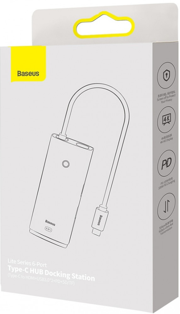 В данный момент этот товар отсутствует в продаже. Возможно, у нас найдется аналогичный или похожий товар здесь. У вашего устройства слишком мало портов? Концентратор 6 в 1 от Baseus решит эту проблему. WKQX050101 оснащен портами USB, USB - C (PD), HDMI и слотом для TF/SD карты. Он предлагает высокоскоростную передачу данных со скоростью 500 Мбит / с и изображение 4K. совместим с широким спектром устройств, а специальная кнопка позволит вам одним щелчком мыши остановиться отображение экрана.