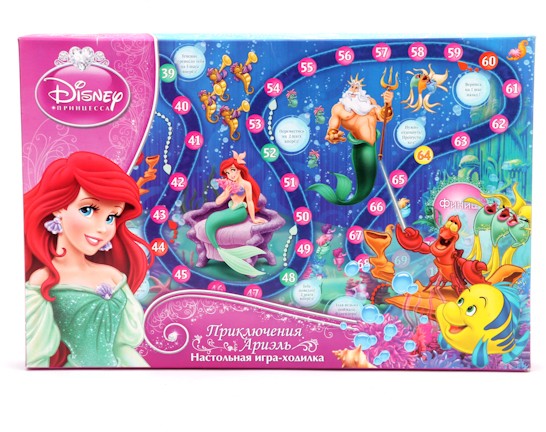 УМка Настольная игра-ходилка «Приключения Ариэль»В данный момент этот товар отсутствует в продаже. Возможно, у нас найдется аналогичный или похожий товар здесь. Настольная игра-ходилка, главной героиней которой является Принцесса Диснея Ариэль, увлечет вас невероятными приключениями. Комплект включает в себя бкрасочное игровое поле, на котором изображены главные персонажи мультипликационного фильма "Русалочка": Тритон, Ариэль, Себастьян, Флаундер и Урсула. |