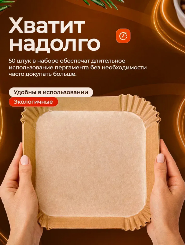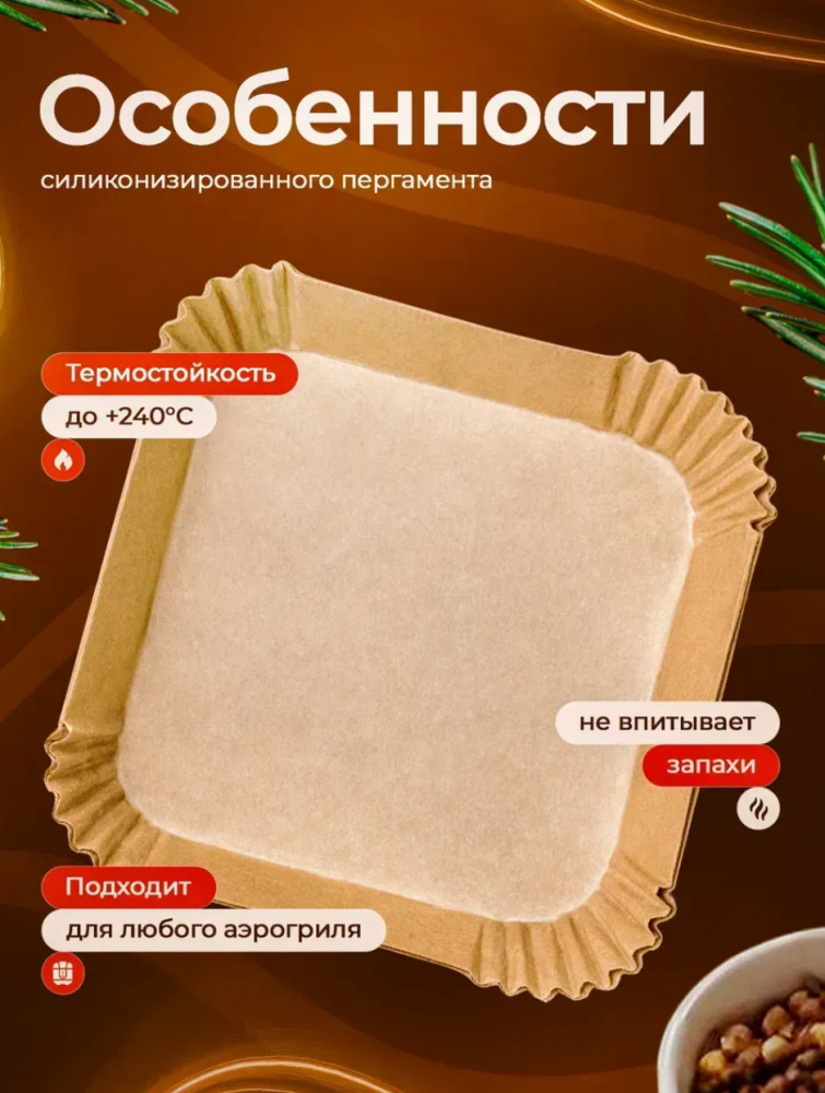 Одноразовые подложки для аэрогриля подходят для ежедневного использования дома, на кухне, при приготовлении здоровой пищи без лишнего масла. Их можно применять как бумагу для запекания, пергамент для духовки, вкладыши для формы, бумажные листы для гриля, аксессуар для кухни и принадлежность для выпечки. Компактный набор пергаментных подложек — это универсальный кухонный помощник для чистого и комфортного приготовления разнообразных блюд.