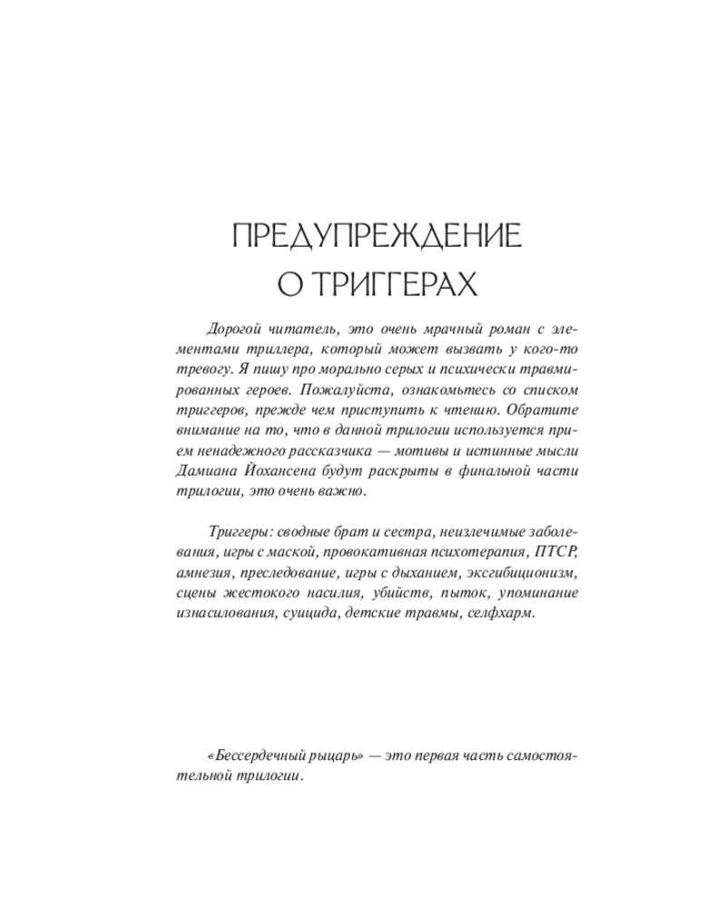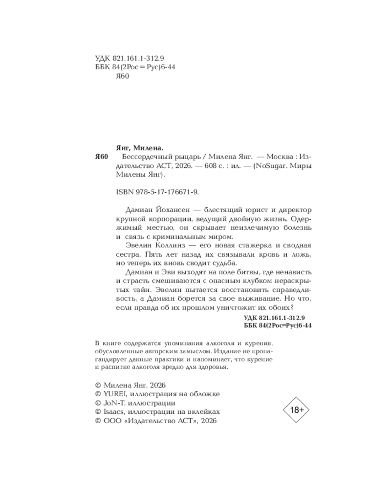 💳 Оплатить за товар можно при получении 🇰🇿 Есть бесплатная доставка по Казахстану от 1 дня 🎁 Копите бонусы с каждой покупки Серия: NoSugar. Миры Милены Янг Дамиан Йохансен — блестящий юрист и директор крупной корпорации, ведущий двойную жизнь. Одержимый местью, он скрывает неизлечимую болезнь и связь с криминальным миром. Эвелин Коллинз — его новый стажер и сводная сестра. Пять лет назад их связывали кровь и ложь, но теперь их вновь сводит судьба. Дамиан и Эви выходят на поле битвы, где ненависть и страсть смешиваются с опасным клубком нераскрытых тайн. Эвелин пытается восстановить справедливость, а Дамиан борется за свое выживание. Но что, если правда об их прошлом уничтожит обоих? |