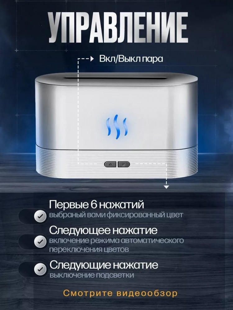 💳 Оплатить за товар можно при получении 🇰🇿 Есть бесплатная доставка по Казахстану от 1 дня 🎁 Копите бонусы с каждой покупки Создайте атмосферу комфорта и уюта в своём доме с помощью ультразвукового увлажнителя воздуха. Этот компактный и стильный прибор не только эффективно увлажняет воздух, но и станет прекрасным дополнением к вашему интерьеру, благодаря приятной подсветке корпуса и эффекту пламени. |