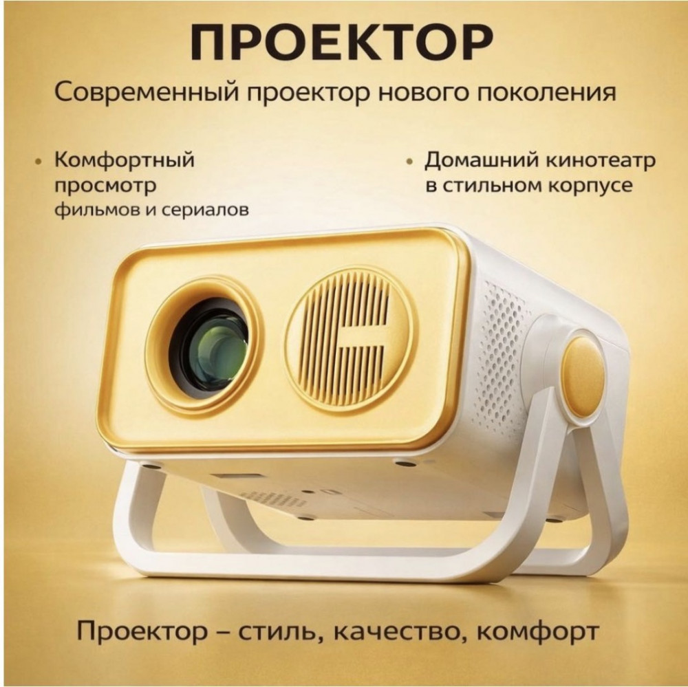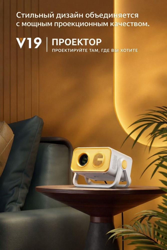 Компактный размер делает устройство удобным для дома, дачи или поездок, а стильный жёлтый корпус добавляет яркий акцент и отлично вписывается в современный интерьер. Этот проектор — идеальный выбор для уютных киновечеров, презентаций и развлечений на большом экране.
