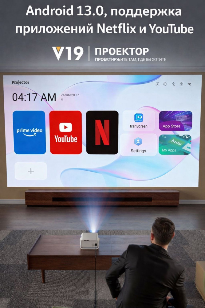 Проектор работает на Android, что позволяет легко подключаться к смартфону, планшету или Wi-Fi u смотреть фильмы, сериалы, YouTube или играть в игры без дополнительных устройств. Встроенная память 8 ГБ даёт возможность хранить любимый контент прямо в проекторе и запускать его в любое время.