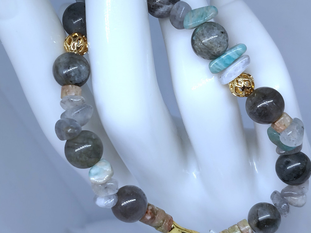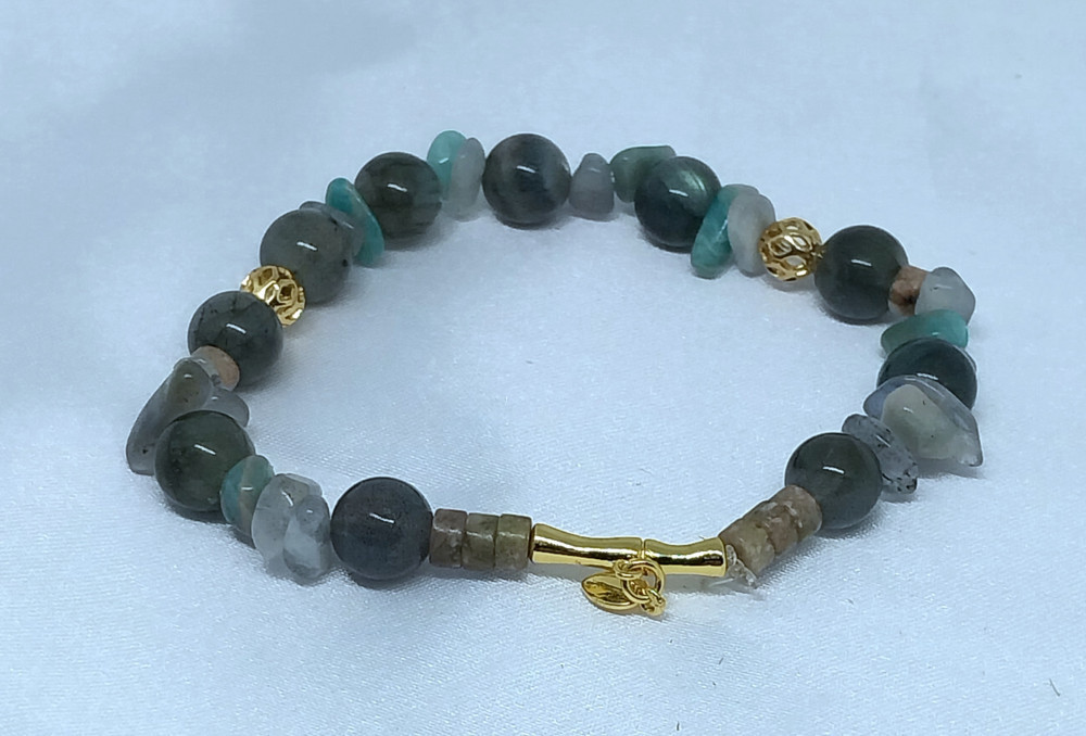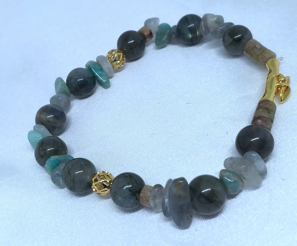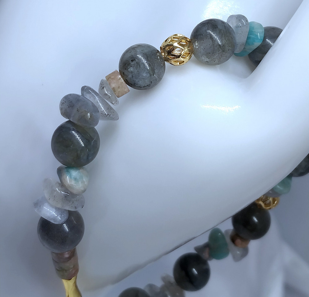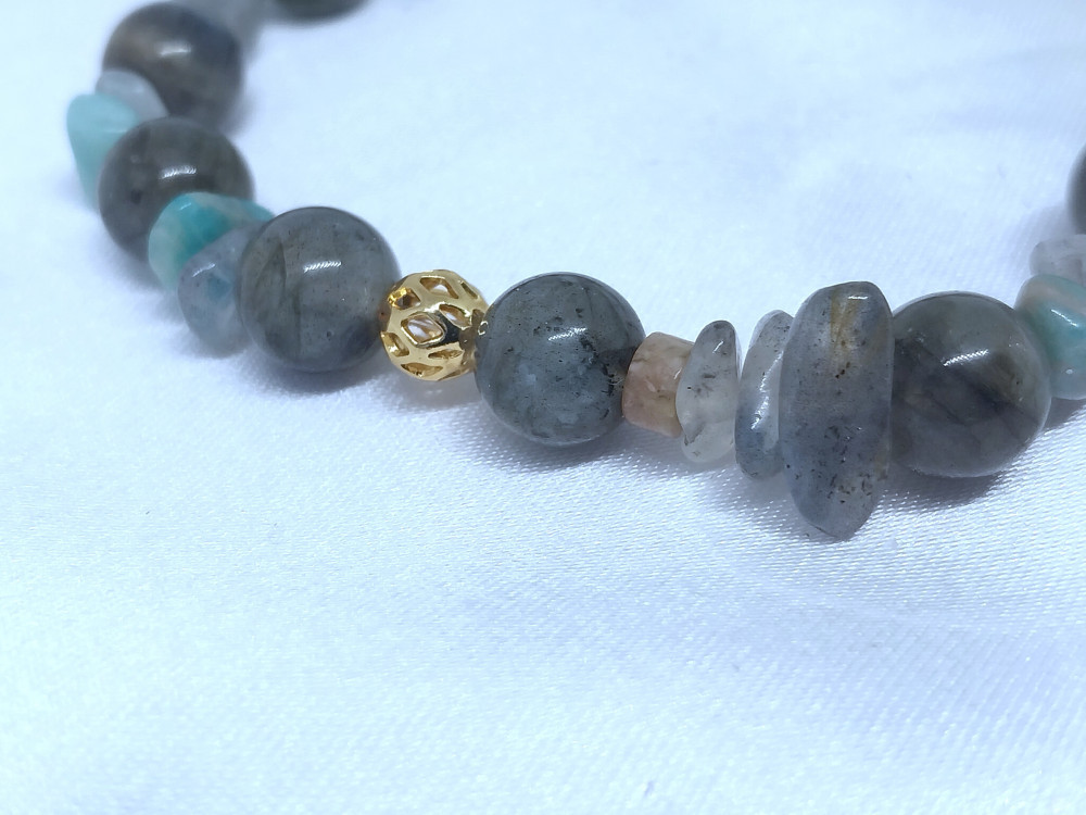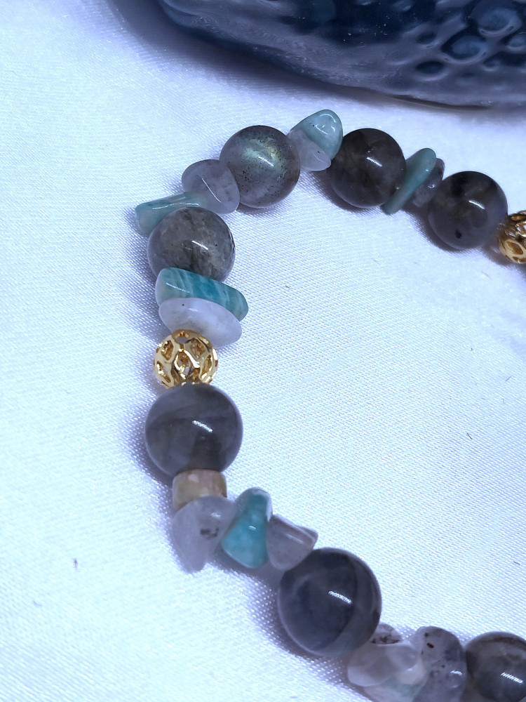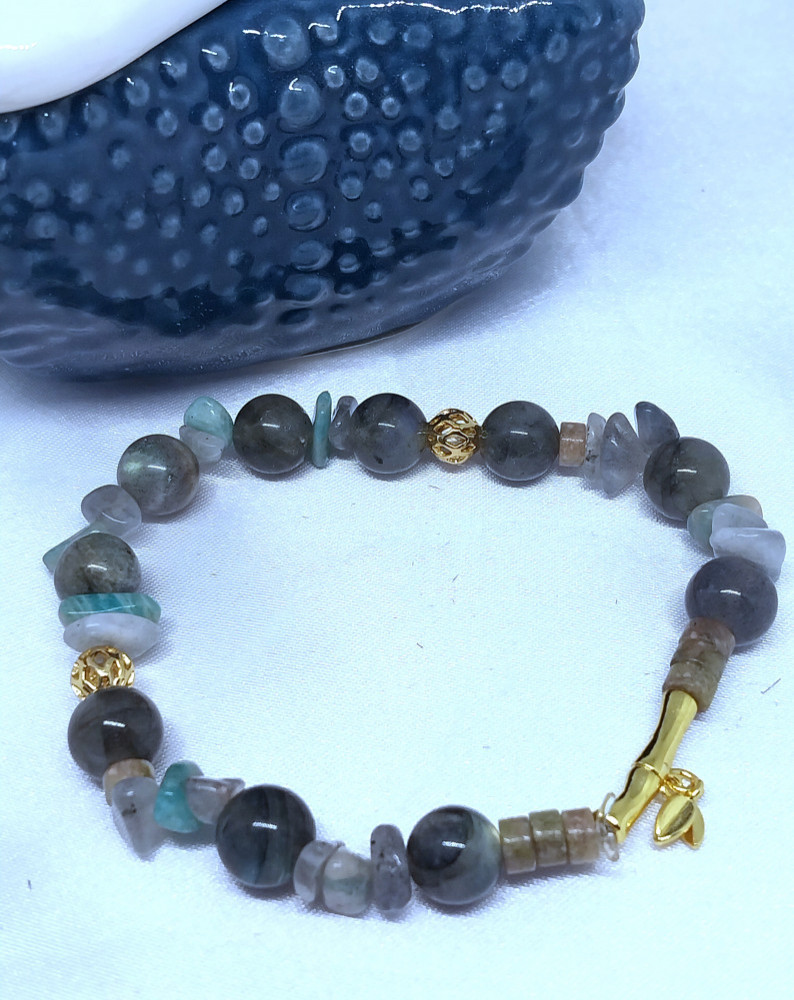 Считается, что лабрадорит обладает защитной энергетикой и используется как оберег от негативного воздействия. Ему приписывают способность усиливать интуицию, творческий потенциал и помогать сохранять эмоциональное равновесие. В практиках литотерапии камню также приписывают свойства, связанные с улучшением общего самочувствия, снижением стресса и поддержанием гармоничного состояния организма. Такой браслет станет не только стильным украшением, но и символичным аксессуаром с особой энергетикой.