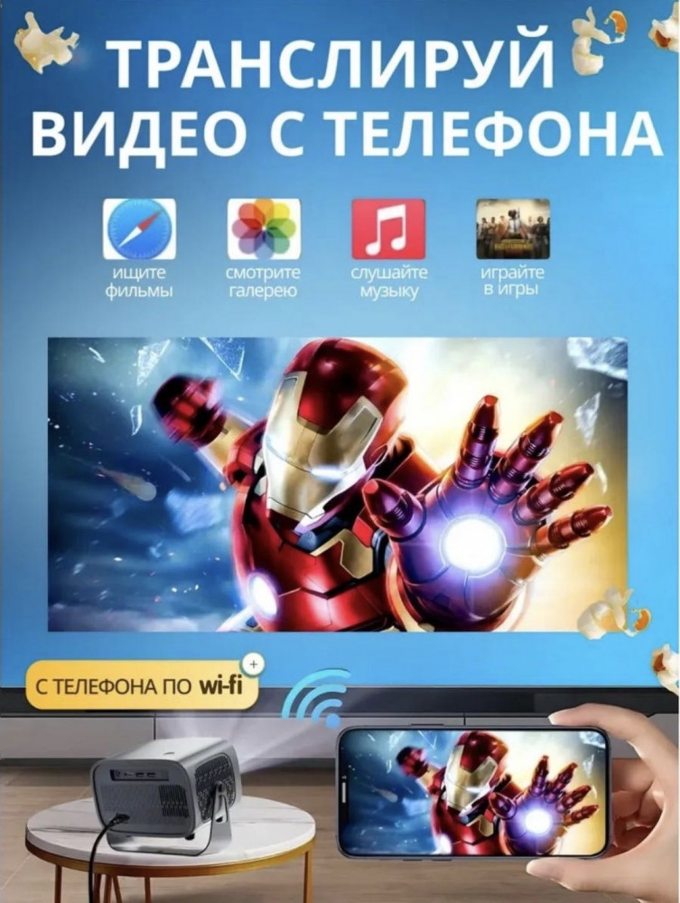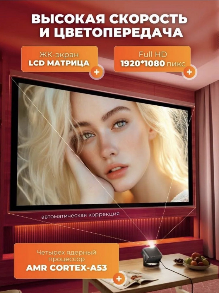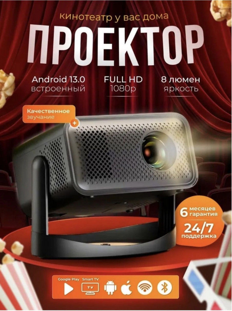 В данный момент этот товар отсутствует в продаже. Возможно, у нас найдется аналогичный или похожий товар здесь. Проектор для фильмов с телефона — это современное решение для создания домашнего кинотеатра и комфортного просмотра фильмов, сериалов и видеоконтента на большом экране. Устройство превращает обычную комнату в настоящий кинозал, позволяя наслаждаться качественным изображением и звуком прямо у себя дома. Проектор оснащён современными беспроводными интерфейсами Wi-Fi и Bluetooth 6.0, что обеспечивает удобное подключение к различным устройствам без лишних проводов.