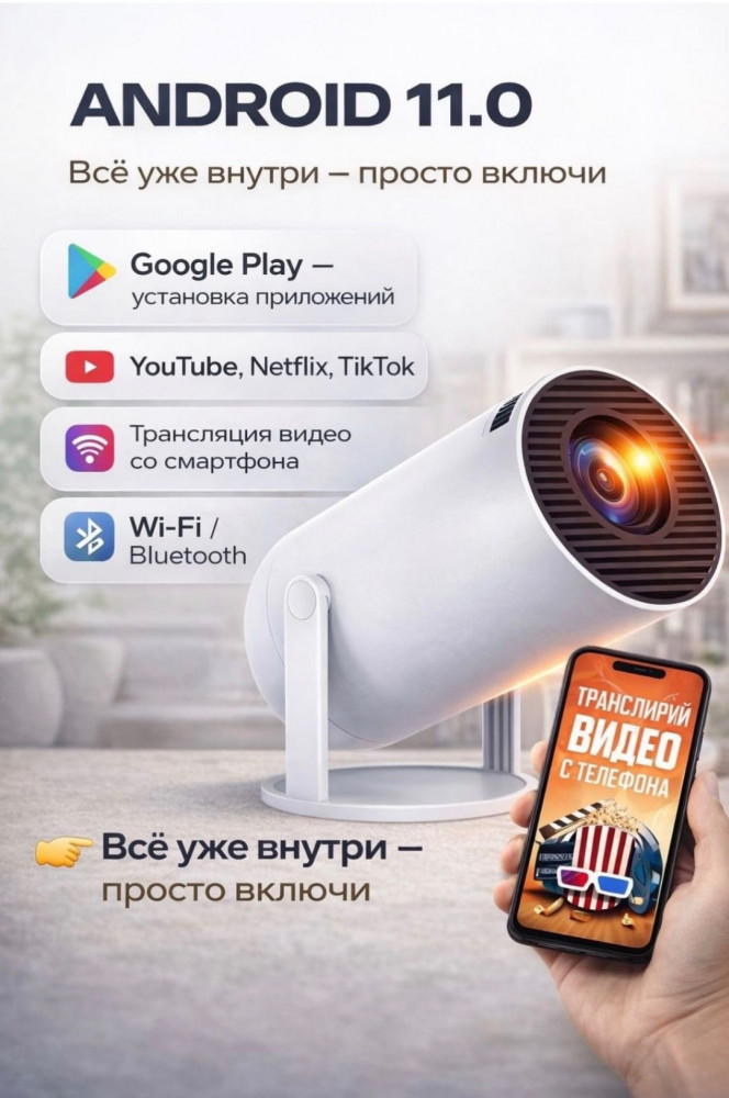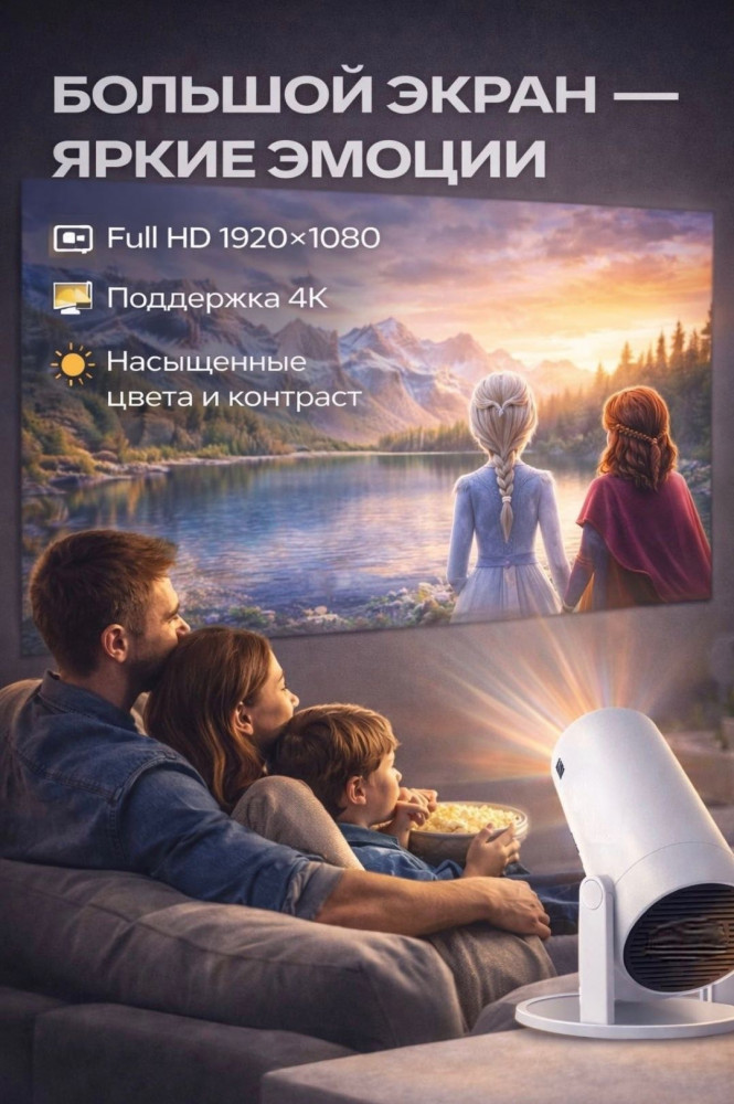 Откройте новые возможности домашнего кино с компактным портативным проектором. Лёгкий и удобный девайс весом всего 0.8 кг легко помещается в рюкзак или сумку, поэтому его можно брать с собой в поездки, на дачу или использовать дома. Несмотря на компактные размеры, устройство обладает широкими функциональными возможностями и подходит для просмотра фильмов, сериалов, видео, игр и проведения презентаций.
