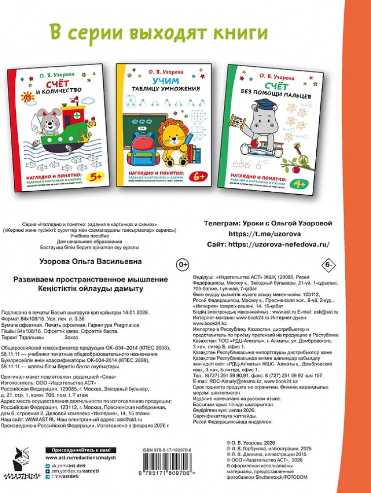💳 Оплатить за товар можно при получении 🇰🇿 Есть бесплатная доставка по Казахстану от 1 дня 🎁 Копите бонусы с каждой покупки Серия: Наглядно и понятно: задания в картинках и схемах «Развиваем пространственное мышление» — интересная и познавательная книга, благодаря которой ребёнок научится читать схемы-инструкции и усвоит пространственные понятия, необходимые нам в повседневной жизни: больше-меньше, ближе-дальше, выше-ниже, справа-слева, первый-последний и т. д. Современная наглядная подача информации — всё понятно даже без помощи взрослых! Для дошкольного возраста. |