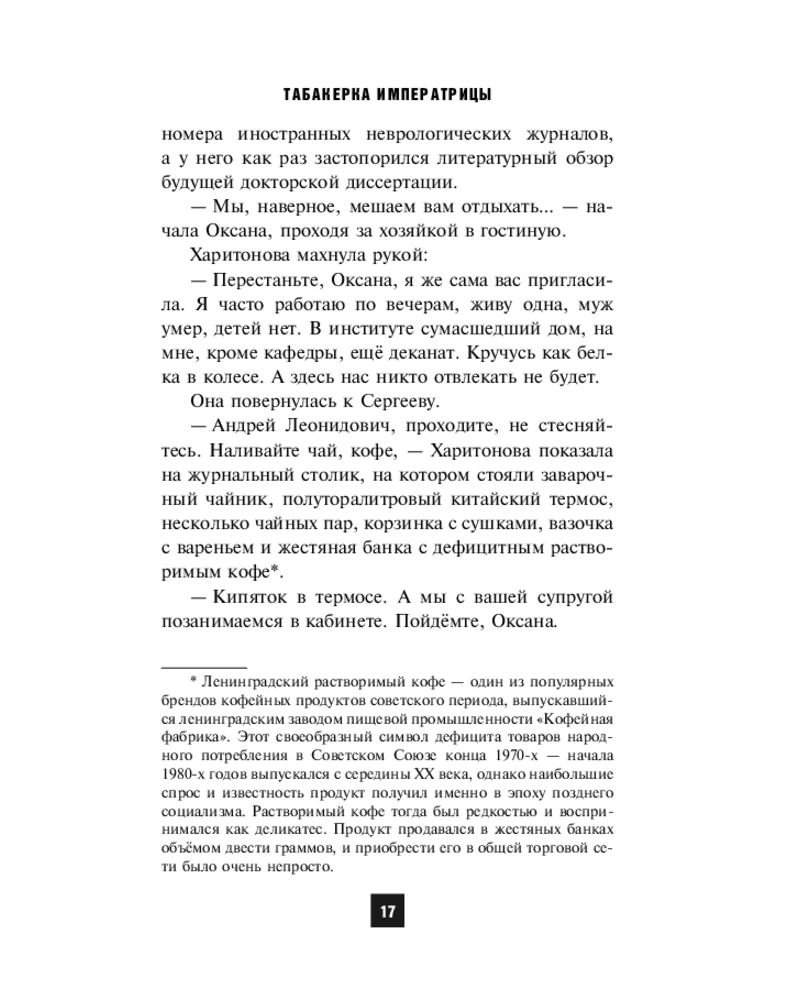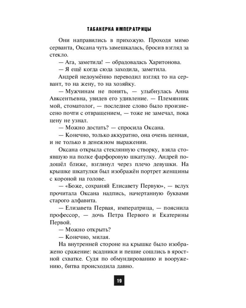 💳 Оплатить за товар можно при получении 🇰🇿 Есть бесплатная доставка по Казахстану от 1 дня 🎁 Копите бонусы с каждой покупки Серия: Мастера сыска. Советское время Темной зимней ночью 1741 года в Санкт-Петербурге произошли события, приведшие через два столетия к череде кровавых преступлений. Уже в советское время врач скорой помощи Андрей Сергеев и его молодая жена Оксана невольно оказываются втянутыми в криминальную историю и, рискуя жизнью, встают на пути злоумышленников. Что скрывает табакерка императрицы и почему за ней так упорно охотится тайная монархическая организация? Зачем в СССР приезжают эмиссары Императорского дома Романовых? Об этом и многом другом вы узнаете, прочитав роман Сергея Леонтьева «Табакерка императрицы». |