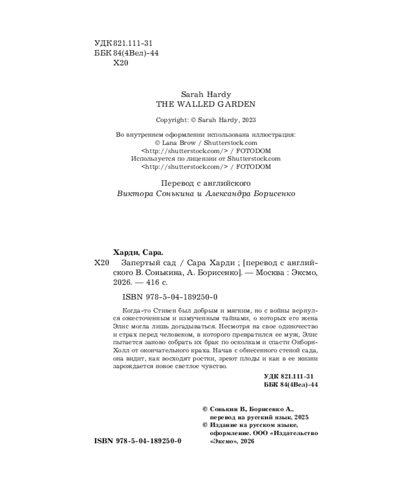💳 Оплатить за товар можно при получении 🇰🇿 Есть бесплатная доставка по Казахстану от 1 дня 🎁 Копите бонусы с каждой покупки Серия: Novel. Любовь сквозь время Никто не выходит из войны без шрамов, но любовь может излечить все. 1946 год, деревня Окборн. Элис Рейн замужем за Стивеном, наследником разрушающегося Окборн-Холла. Когда-то он был добрым и мягким, но вернулся чужим — ожесточённым и измученным тайнами, о которых Элис может лишь догадываться. |