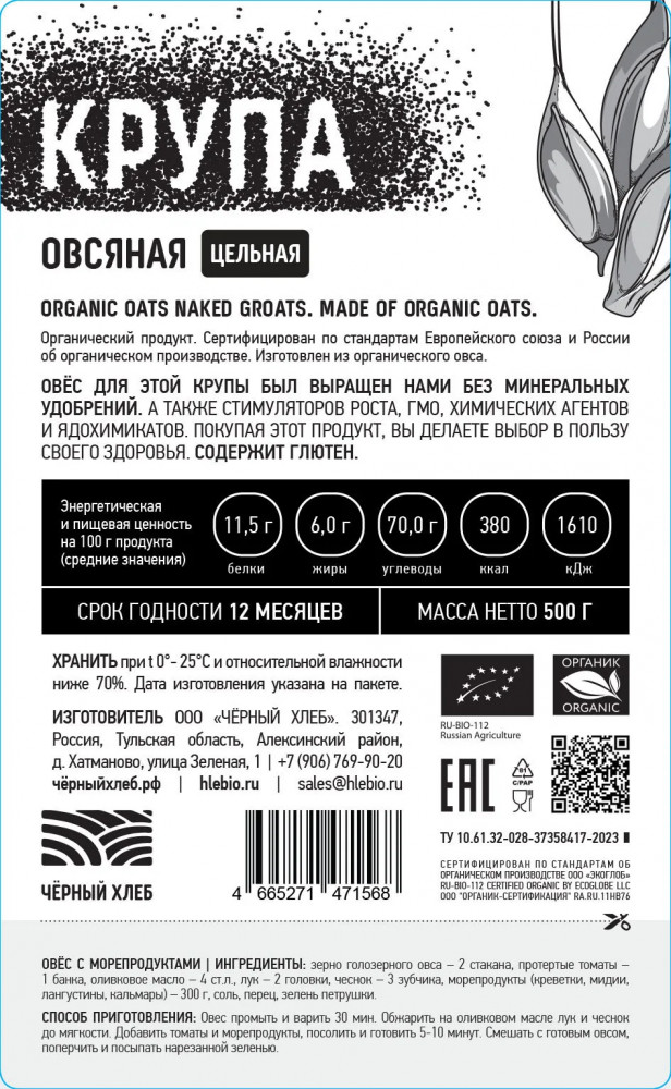 💳 Оплатить за товар можно при получении 🇰🇿 Есть бесплатная доставка по Казахстану от 1 дня 🎁 Копите бонусы с каждой покупки Сертифицированная по органическому стандарту Евросоюза цельная овсяная крупа марки «Чёрный хлеб» (EU 834/2007) является товаром высшего качества. Крупа — самая чистая форма овсянки. Её производят из цельных зёрен овса. Питательные вещества в такой форме сохраняются максимально, так как целостность зерна не нарушена. Этот вид крупы готовится дольше, чем дроблёная овсянка или овсяные хлопья, и он требует предварительного замачивания. Лучший способ приготовить овсянку на гарнир — это сварить её на среднем огне, выключить плиту и оставить на ночь. С утра у вас будет свой завтрак чемпионов. Самая точная информация всегда содержится на этикетке самого продукта: мы периодически обновляем данные на основе анализа питательных веществ сразу после получения нового урожая. Храните продукт в сухом прохладном месте или в холодильнике, чтобы продлить срок годности. |