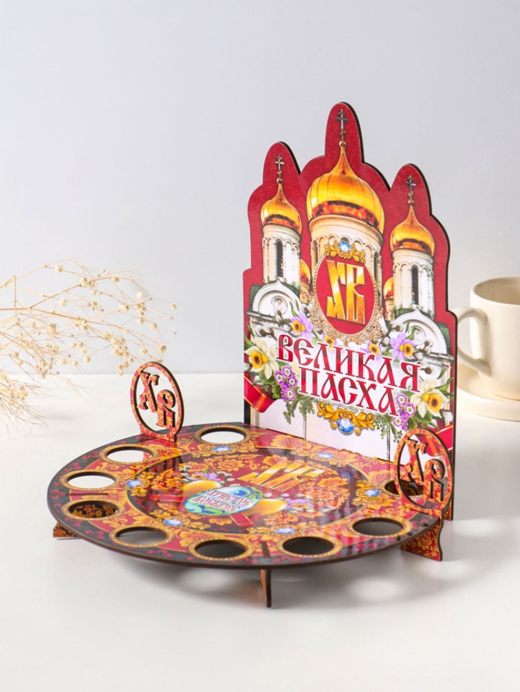 💳 Оплатить за товар можно при получении 🇰🇿 Есть бесплатная доставка по Казахстану от 1 дня 🎁 Копите бонусы с каждой покупки Встречайте Пасху в окружении красоты и традиций. Эта подставка для кулича и пасхальных яиц превратит праздничный стол в гармоничную композицию. Её дизайн вдохновлён архитектурой православных храмов, создавая торжественное и душевное настроение. Устойчивая конструкция надежно держит главный пасхальный хлеб. Девять аккуратных ячеек для крашеных яиц — по числу ангельских чинов. Изготовлена из плотного ХДФ, покрытого детализированным рисунком. Классическое красное оформление с белоснежными элементами символизирует радость праздника. Для сохранения яркости красок рекомендуется бережное мытьё вручную. Эта пасхальная подставка — не просто утилитарный предмет, а важный элемент праздничной символики. Она организует пространство стола, выделяя кулич и крашенки как главные атрибуты Светлого Воскресения. |