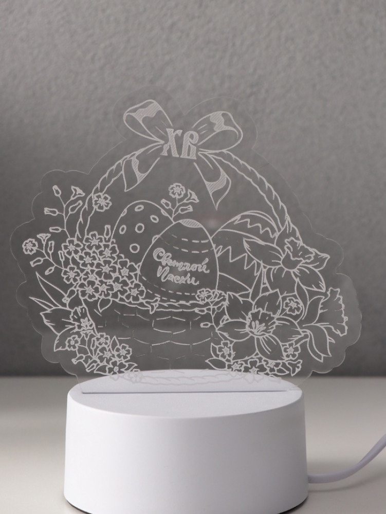 💳 Оплатить за товар можно при получении 🇰🇿 Есть бесплатная доставка по Казахстану от 1 дня 🎁 Копите бонусы с каждой покупки Светильник 3D RISALUX «Пасхальная корзинка» — декоративный LED-ночник, который станет оригинальным украшением интерьера в период пасхальных праздников. Светильник выполнен в виде объёмной иллюзии с изображением пасхальной корзинки, создающей эффект 3D-рисунка при включении подсветки. Мягкий свет создаёт уютную атмосферу и отлично подходит для использования в спальне, детской комнате или в качестве праздничного декора. |