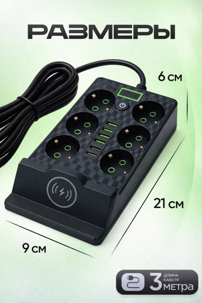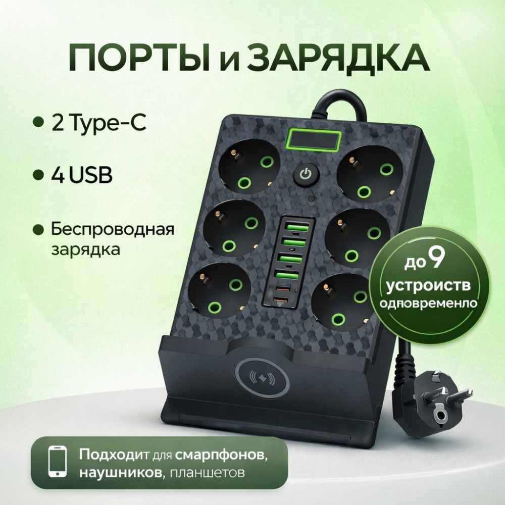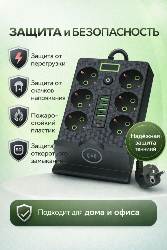 Сетевой фильтр с беспроводной зарядкой-43% +85