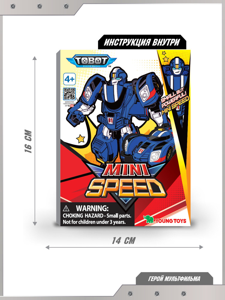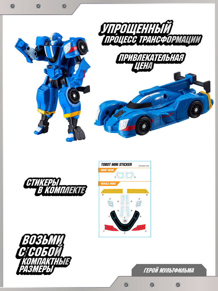 Tobot Робот-трансформер «Мини Спиди»В данный момент этот товар отсутствует в продаже. Возможно, у нас найдется аналогичный или похожий товар здесь. Робот-трансформер тобот Мини Спиди — это современная детская игрушка, которая идеально подходит для мальчиков и детей в возрасте от 3 до 8 лет. Данный робот отличается уникальной способностью превращаться в скоростную гоночную машину, что делает процесс игры еще более захватывающим. Игрушка выполнена в мини формате, благодаря чему отлично подходит для знакомства с миром трансформеров. Упрощенный процесс трансформации по сравнению со стандартными тоботами позволяет ребенку без труда превращать робота в машину и обратно. Такой механизм способствует развитию мелкой моторики, логического мышления и воображения у детей. Яркий дизайн и узнаваемый стиль непременно привлекут внимание ребенка. Эта игрушка понравится как поклонникам вселенной тоботы, так и тем, кто только начинает интересоваться роботами-трансформерами. Машинка легко преображается из мощного робота в быструю машину одним движением рук. Такая функциональность добавляет динамики в игровые сценарии, позволяя детям придумывать новые приключения героев галактики. Игра с этим трансформером развивает фантазию, самостоятельность и навыки взаимодействия с другими детьми. Тобот Мини Спиди станет центральным элементом коллекции детских трансформеров вашего ребенка или дополнит уже существующую линейку машинок-роботов. |