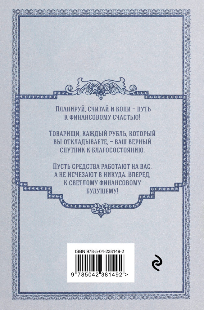 💳 Оплатить за товар можно при получении 🇰🇿 Есть бесплатная доставка по Казахстану от 1 дня 🎁 Копите бонусы с каждой покупки Серия: Полезные блокноты Сохраняй порядок в финансах — как в сберкнижке: планируй, копи, исполняй мечты! Этот ежедневник в духе доброй советской сберкнижки поможет привести доходы и расходы в рабочий порядок и превратить экономию в привычку. |