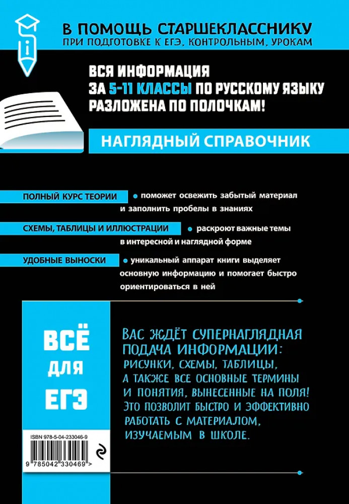 💳 Оплатить за товар можно при получении 🇰🇿 Есть бесплатная доставка по Казахстану от 1 дня 🎁 Копите бонусы с каждой покупки Серия: В помощь старшекласснику. Наглядный справочник В книге приводятся все основные темы школьного курса русского языка с 5 по 11 классы. Уникальная наглядная структура с активными полезными полями поможет оперативно найти и ознакомиться с необходимым материалом, повторить забытое и выучить новое. |