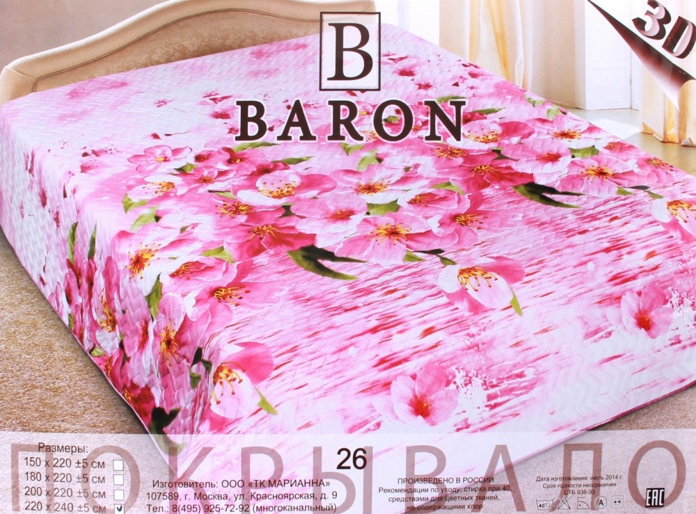 Отзывы «Стеганое покрывало из искусственного шелка «Baron» 3D (рис. 26, 1,5 спальное, размер 150х220)»