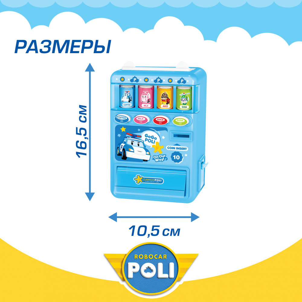 Robocar Poli Набор игровой «Вендинговый автомат Поли»В данный момент этот товар отсутствует в продаже. Возможно, у нас найдется аналогичный или похожий товар здесь. Интерактивный игровой набор «Робокар Поли Вендинговый автомат» — отличная развивающая игрушка для детей от 3 лет. Аппарат сочетает в себе элементы торгового аппарата для напитков, позволяя ребенку погрузиться в сюжет любимого мультфильма. Вендинговый автомат оформлен по мотивам известного мультсериала и оснащен красочными баночками с изображением героев, что сделает игру интересной как для мальчика, так и для девочки. Аппарат для напитков выполнен в ярком и привлекательном дизайне, который понравится любому ребенку. Детский игровой процесс строится вокруг имитации настоящих покупок: ребенок сможет открыть верхний отсек, чтобы поместить внутрь баночки с изображением героев мультфильма. Положи монетку в специальный отсек и нажми на кнопку — и получи свою «покупку». Монетки собираются в дополнительном отсеке сбоку, чтобы после завершения игры их можно было легко забрать и начать процесс заново. В комплекте вы найдете 1 вендинговый автомат, 8 баночек, 1 коробочку внутри которой хранятся 8 монеток, а также 1 карточку с изображением Поли. Такой детский игровой набор позволит малышу освоить простые арифметические операции. Игрушка способствует улучшению мелкой моторики, развитию логики и формированию самостоятельности у девочек и мальчиков. |