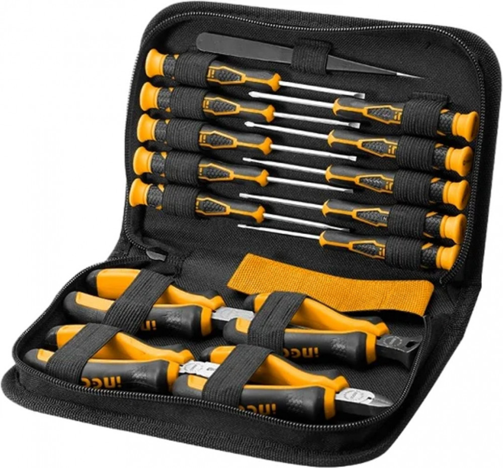 💳 Оплатить за товар можно при получении 🇰🇿 Есть бесплатная доставка по Казахстану от 1 дня 🎁 Копите бонусы с каждой покупки Набор прецизионного инструмента INGCO 15 предметов HKTTS0151 пригодится для работы с мелкими предметами в условиях ограниченного пространства. Универсален и является надежными помощником как в быту, так и в профессиональной сфере. Комплект поставляется в удобной сумке на молнии, что обеспечивает удобство хранения и транспортировки. Такой набор очень удобен для выполнения различных операций в области слесарно-монтажных работ. Эргономичные двухкомпонентные противоскользящие рукоятки. |