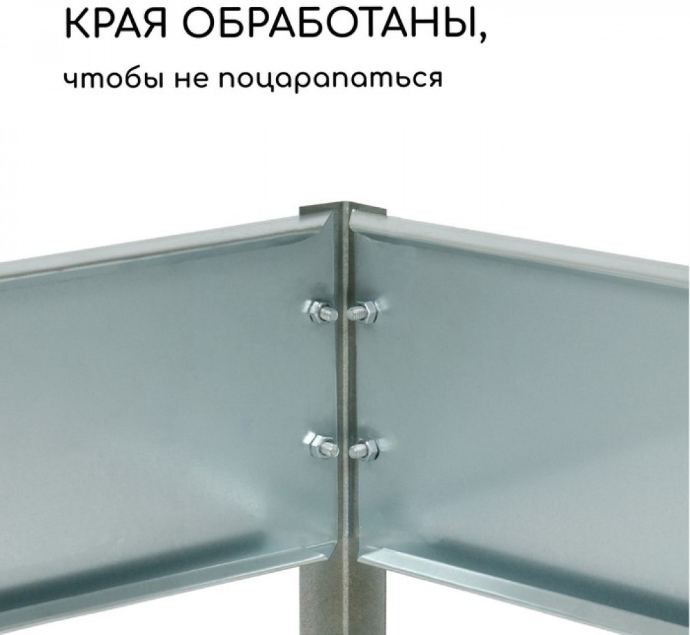 Ограждения для грядок из оцинкованной стали — долговечные и надёжные. Они не разлагаются в почве и выглядят как новые многие годы. Это лёгкий способ придать участку нарядный вид и предотвратить осыпание земли. Изделия просты в эксплуатации: их легко собрать и разобрать. В летнее время возможен нагрев почвы внутри ограждения.