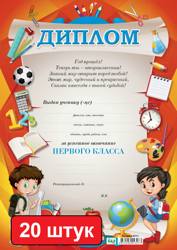 Набор дипломов «Диплом за успешное окончание первого класса»+19