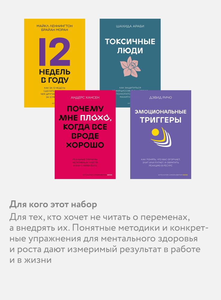 Антология саморазвития. 12 недель в году. Почему мне плохо, когда всё вроде хорошо. Токсичные люди. Эмоциональные триггеры. Комплект из 4 книг-40% +94