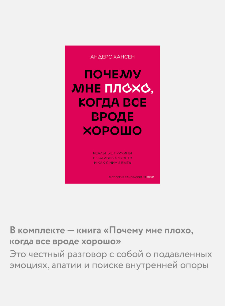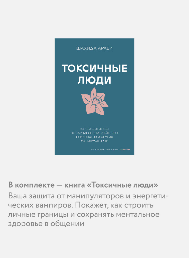 💳 Оплатить за товар можно при получении 🇰🇿 Есть бесплатная доставка по Казахстану от 1 дня 🎁 Копите бонусы с каждой покупки Комплект из 4 бестселлеров МИФа о целях, эмоциях, личных границах и внутренней устойчивости. Совокупный тираж — более 1 млн экземпляров. Книги, которые помогают расти, лучше понимать себя и действовать осознанно. |