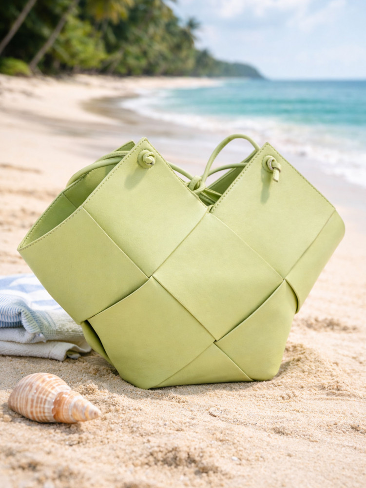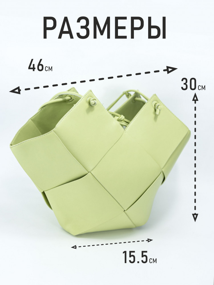 Модная женская сумка-шоппер из мягкой эко-кожи — идеальный аксессуар для повседневных образов, прогулок, работы и путешествий. Стильный плетёный дизайн придаёт сумке современный и трендовый вид, а нежный фисташковый цвет делает образ лёгким, свежим и летним.