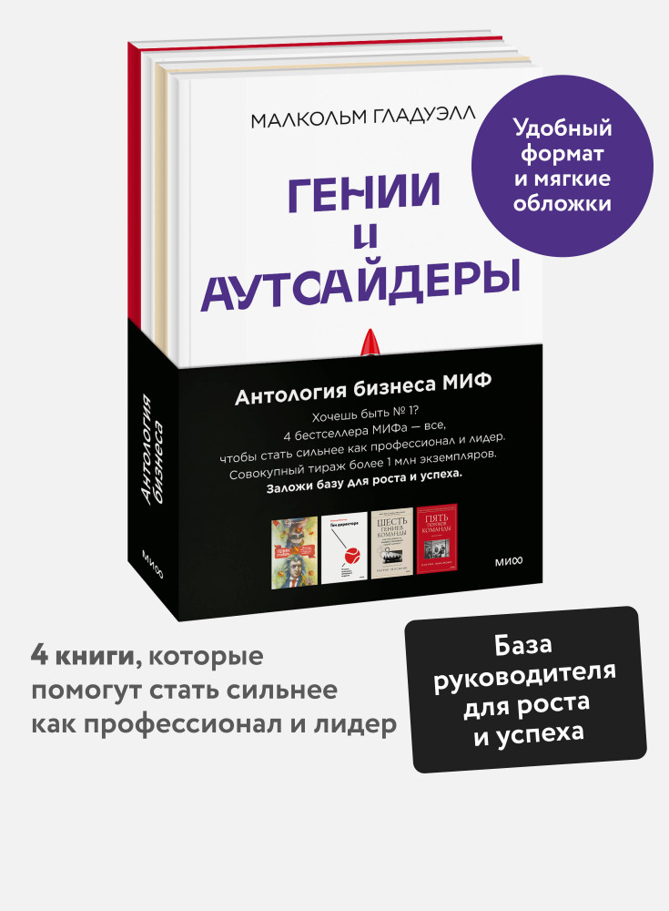 Антология бизнеса. Пять пороков команды. Ген директора. Гении и аутсайдеры. Шесть гениев команды. Комплект из 4 книгВладимир Моженков, Малкольм Гладуэлл, Патрик М. Ленсиони -40% +94