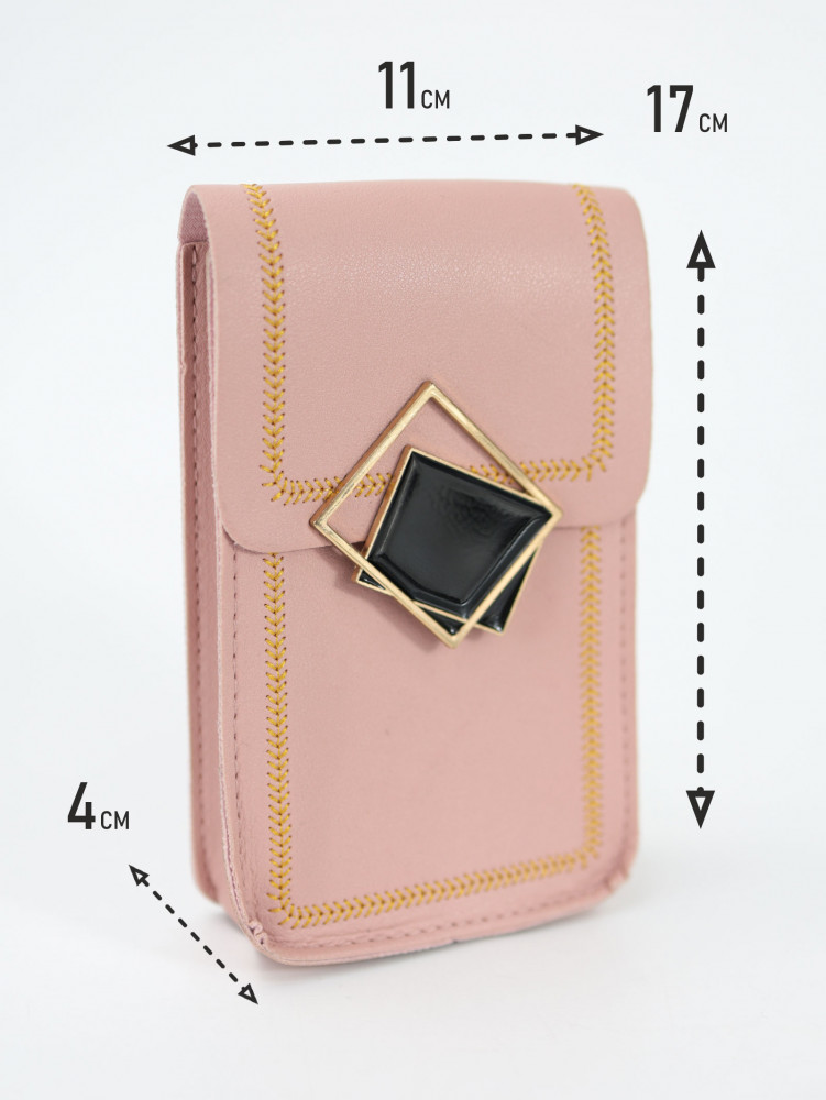 Размеры сумочки: высота — 17 см, ширина — 11 см, толщина — 4 см. Внутри достаточно места для телефона, очков, косметики, ключей, карт и других небольших предметов.