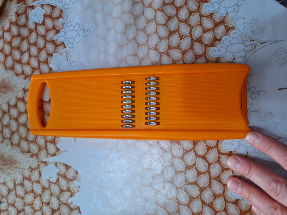 Терка острая - это хорошо. Но показалась не очень удобной, потому что скользит, морковь получается тоньше, чем в магазине, и не совсем удобно тереть, есть вероятность порезов.