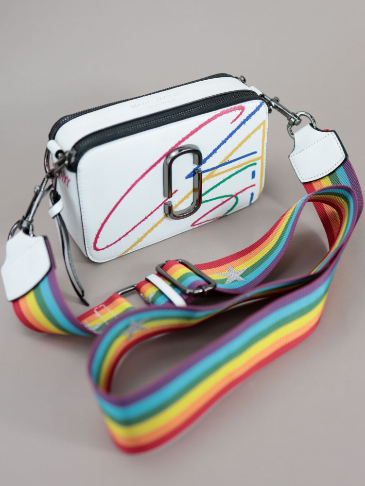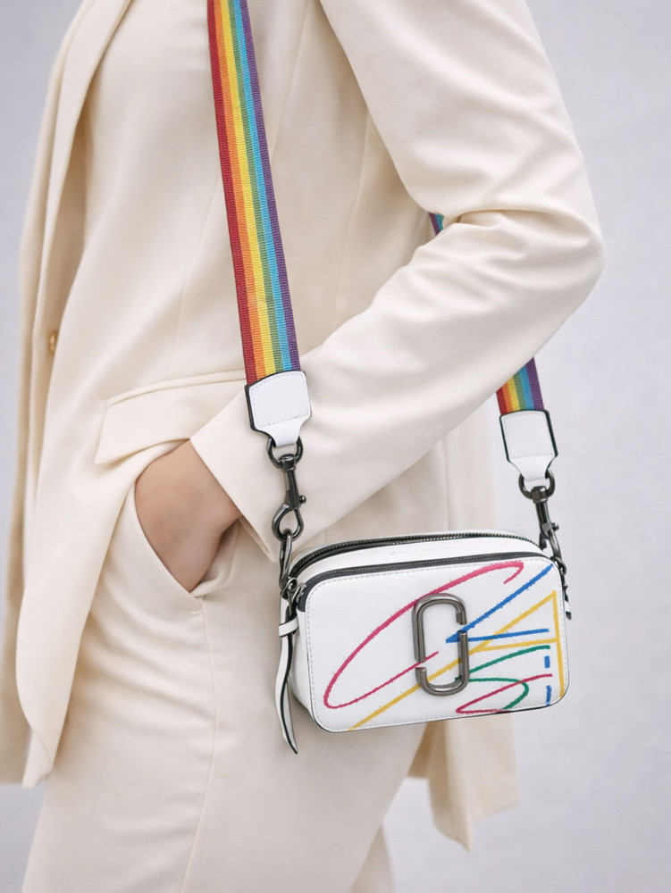 В комплекте идет стильный широкий ремешок с ярким радужным дизайном. Он регулируется по длине и позволяет носить сумку на плече или через плечо, создавая современный и модный образ.
