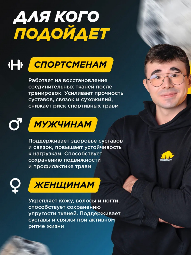 После 25 лет естественная выработка коллагена в организме замедляется. Интенсивные тренировки еще больше увеличивают расход этого белка. Прием добавки «Sport Edition» компенсирует этот дефицит, обеспечивая организм строительным материалом для соединительных тканей.