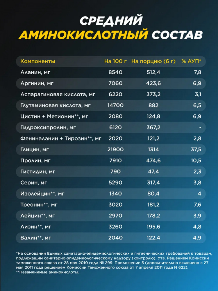 • высокая дозировка: 5800 мг чистой белковой фракции на порцию;