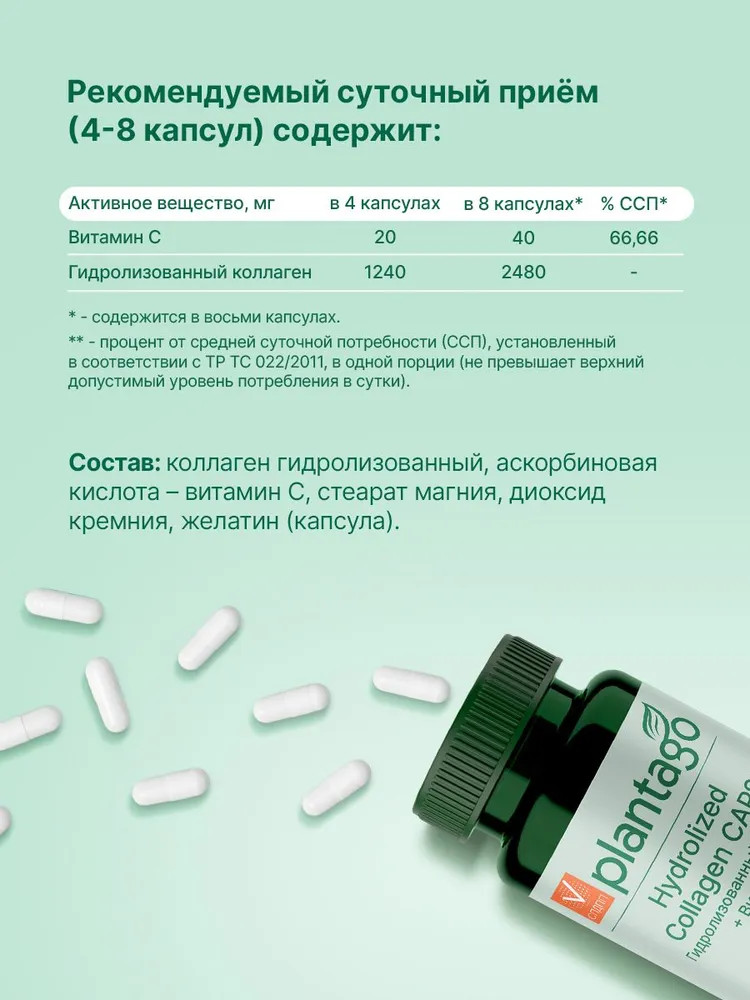 Plantago Гидролизованный коллаген для волос и кожи, связок и суставов «Hydrolyzed collagen & Vitamin C»-20% +79