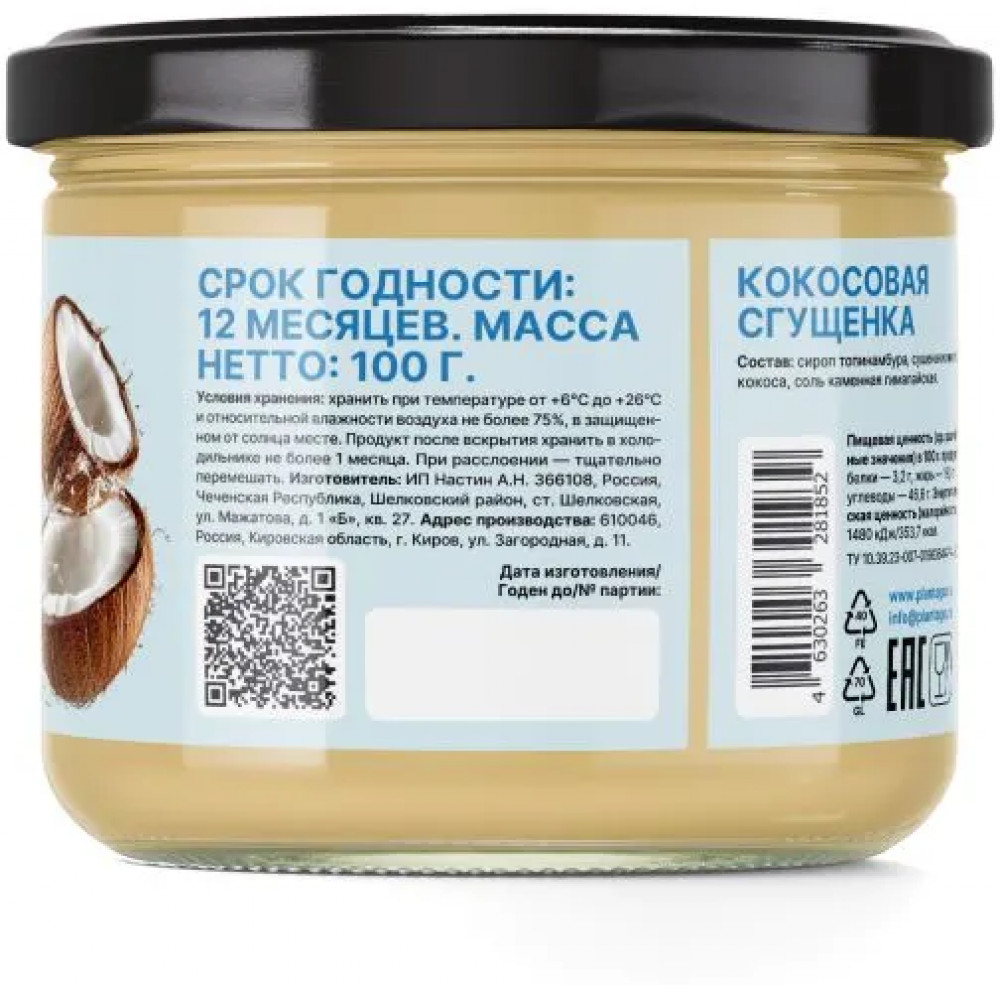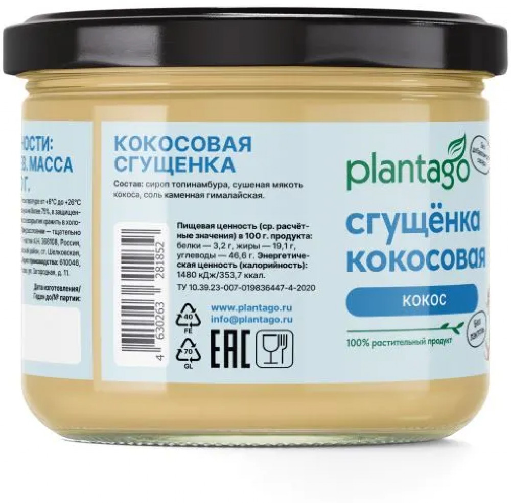 Plantago Сгущенка кокосовая без сахара